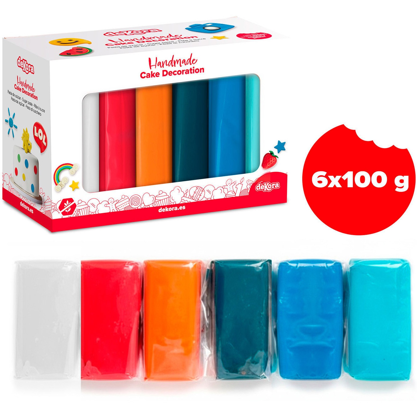 Ensemble de pâte à sucre de 6 couleurs mission spatiale de 600 gr - Dekora
