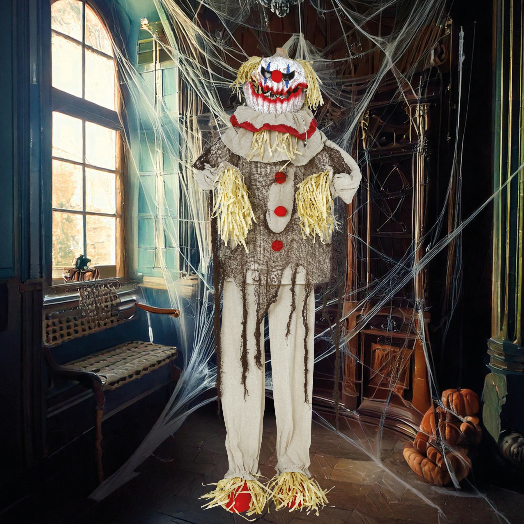 Épouvantail clown avec lumière, son et mouvement de 1,75 m
