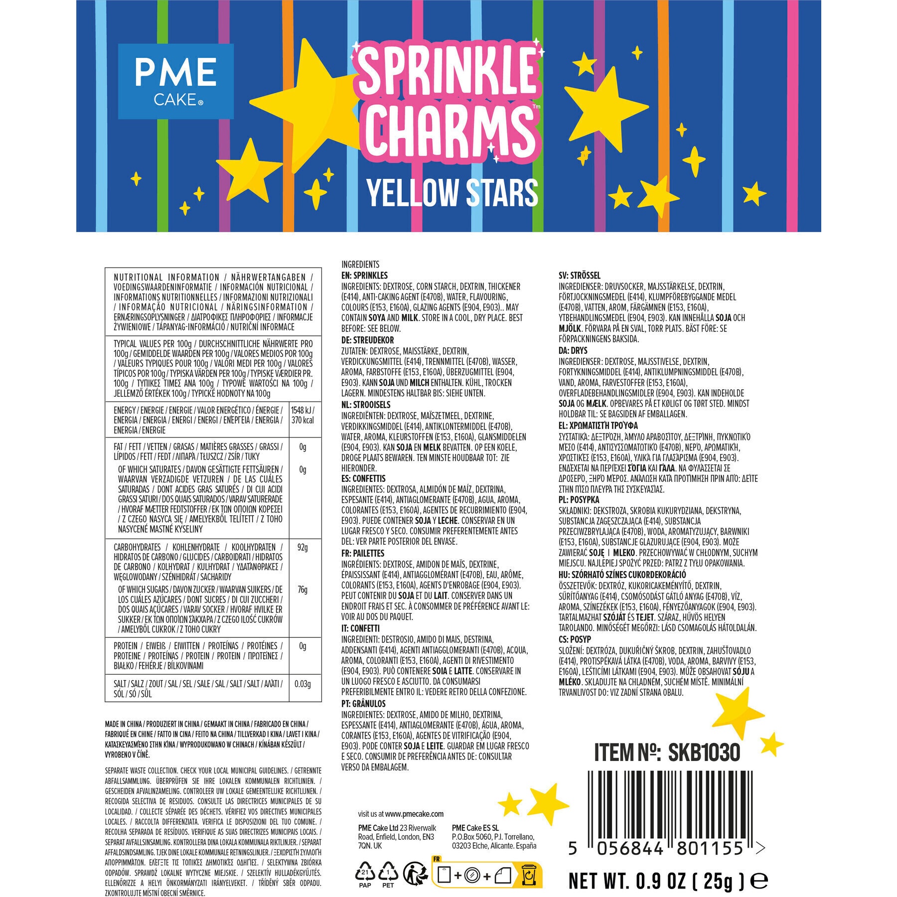 Ingrédients: dextrose, amidon de maïs, dextrine, épaississant (E414), antiagglomérant (E470B), arôme, agents d'enrobage (E904, E903), colorants (E153, E160A).