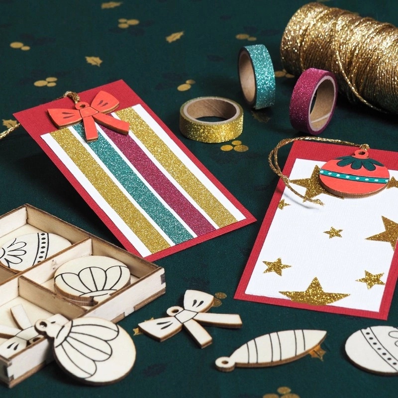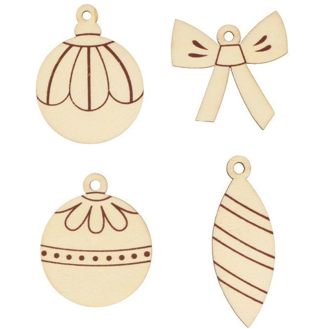 Figures en bois découpé pour décorations de Noël - 12 unités
