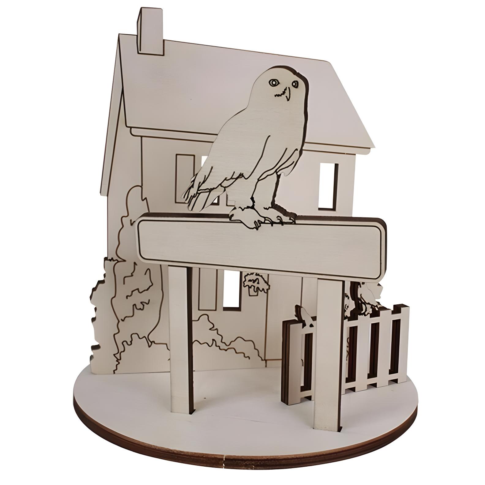 • Scène représentant une maison avec panneau et chouette, issue de la collection « École de Magie ».