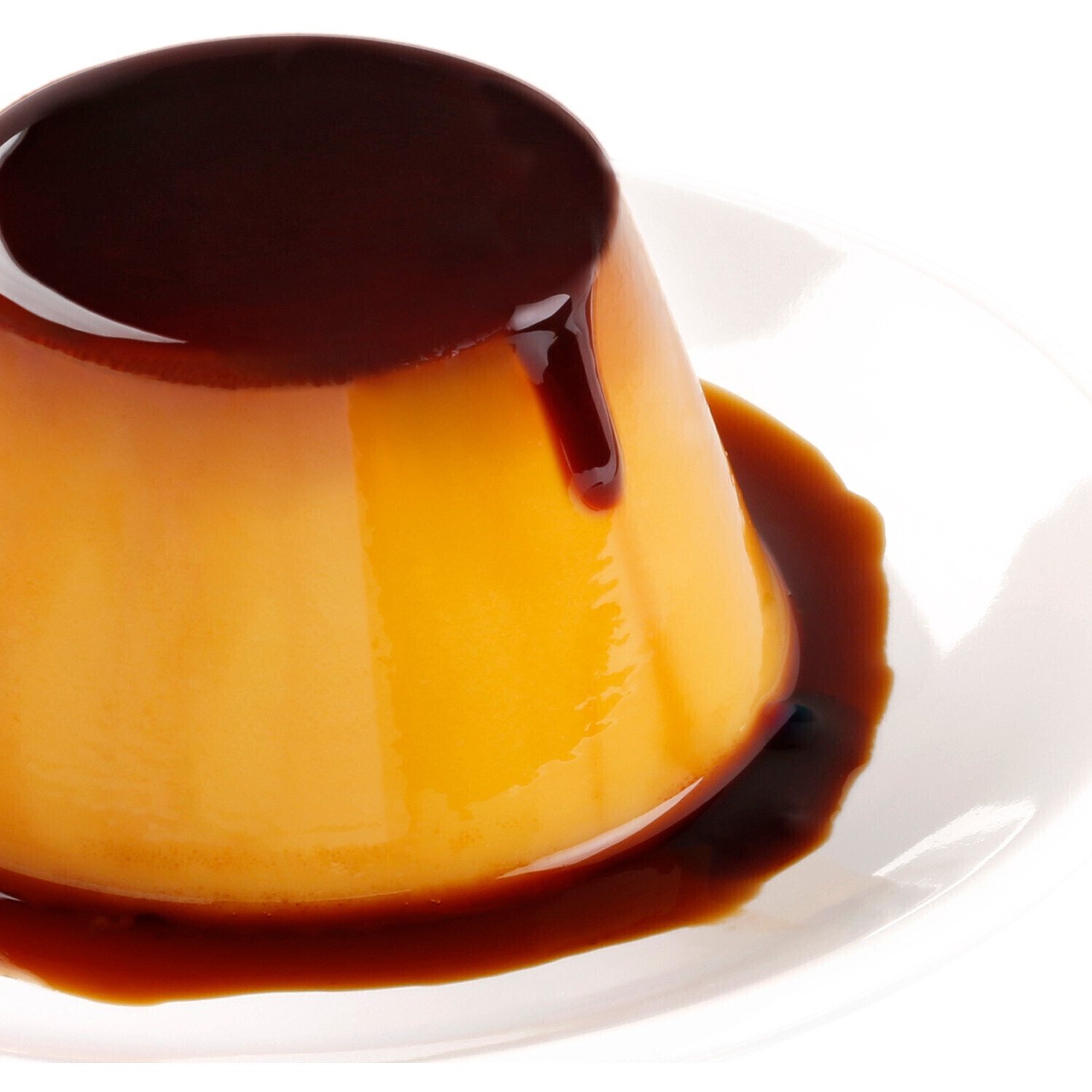 Ingrédients flan: Sucre, épaississant (carraghénane), arômes, huile de tournesol et colorants (E160b (ii) et curcumine).