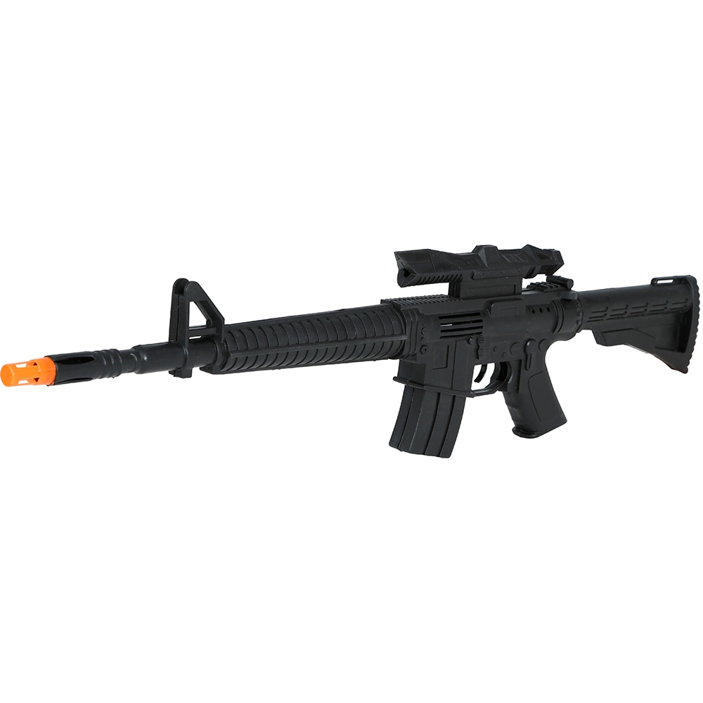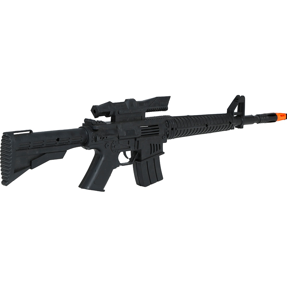 Fusil d'assaut jouet au rendu réaliste, idéal pour compléter les déguisements militaires, de policier ou tactiques. Fabriqué en PVC léger, il se manipule aisément pendant les défilés et les fêtes. L'embout orange visible indique qu'il s'agit d'un jouet, pour une sécurité renforcée lors d'événements publics. Il apporte une touche authentique à votre tenue sans être une arme réelle, parfait pour le Carnaval, les enterrements de vie de célibataire et les séances photo thématiques.