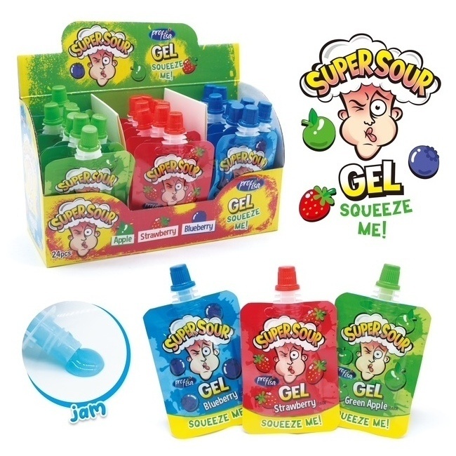 • Bonbon liquide avec des saveurs de fraise, de pomme verte ou de myrtille.