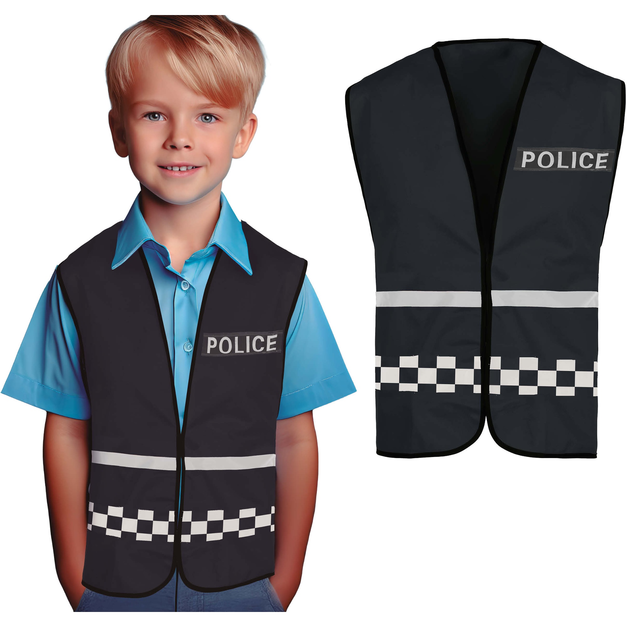 • Design réaliste avec l'inscription «POLICE» et bandes à damier réfléchissantes.