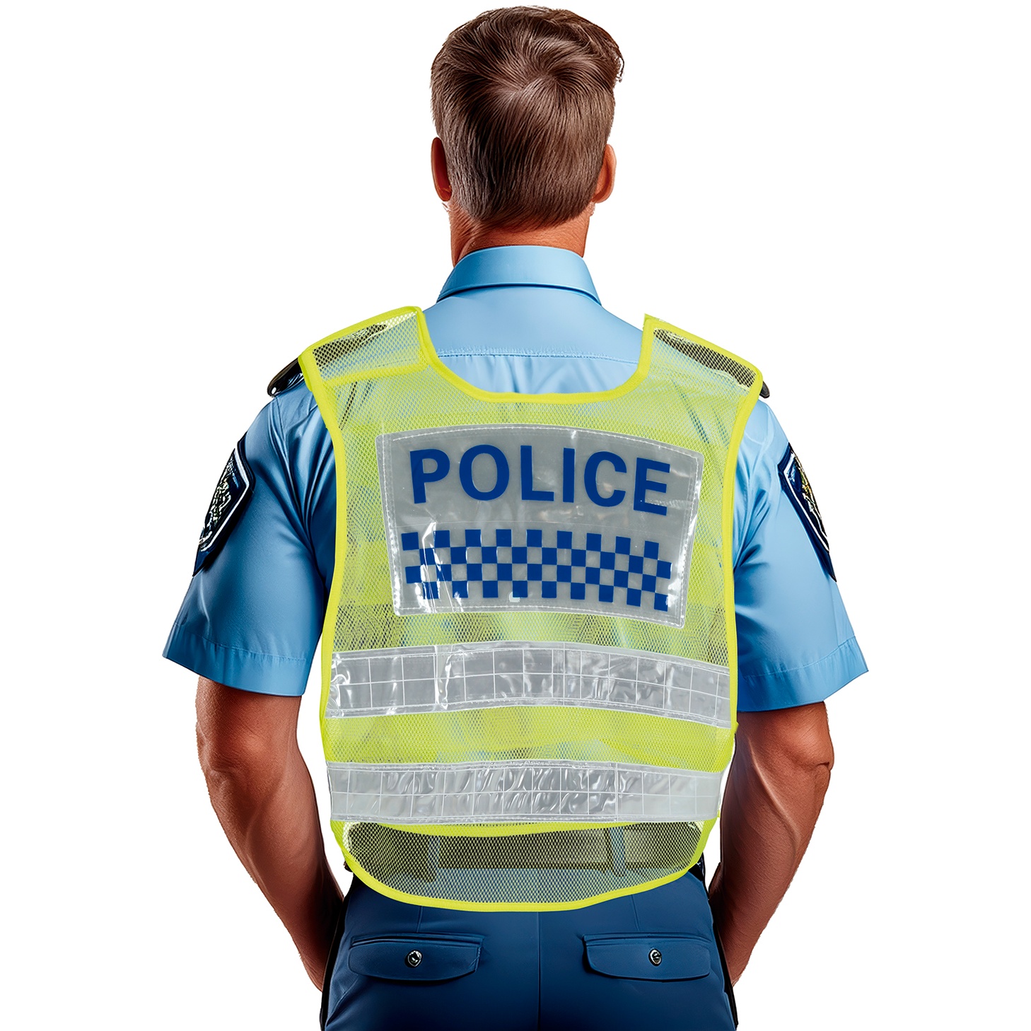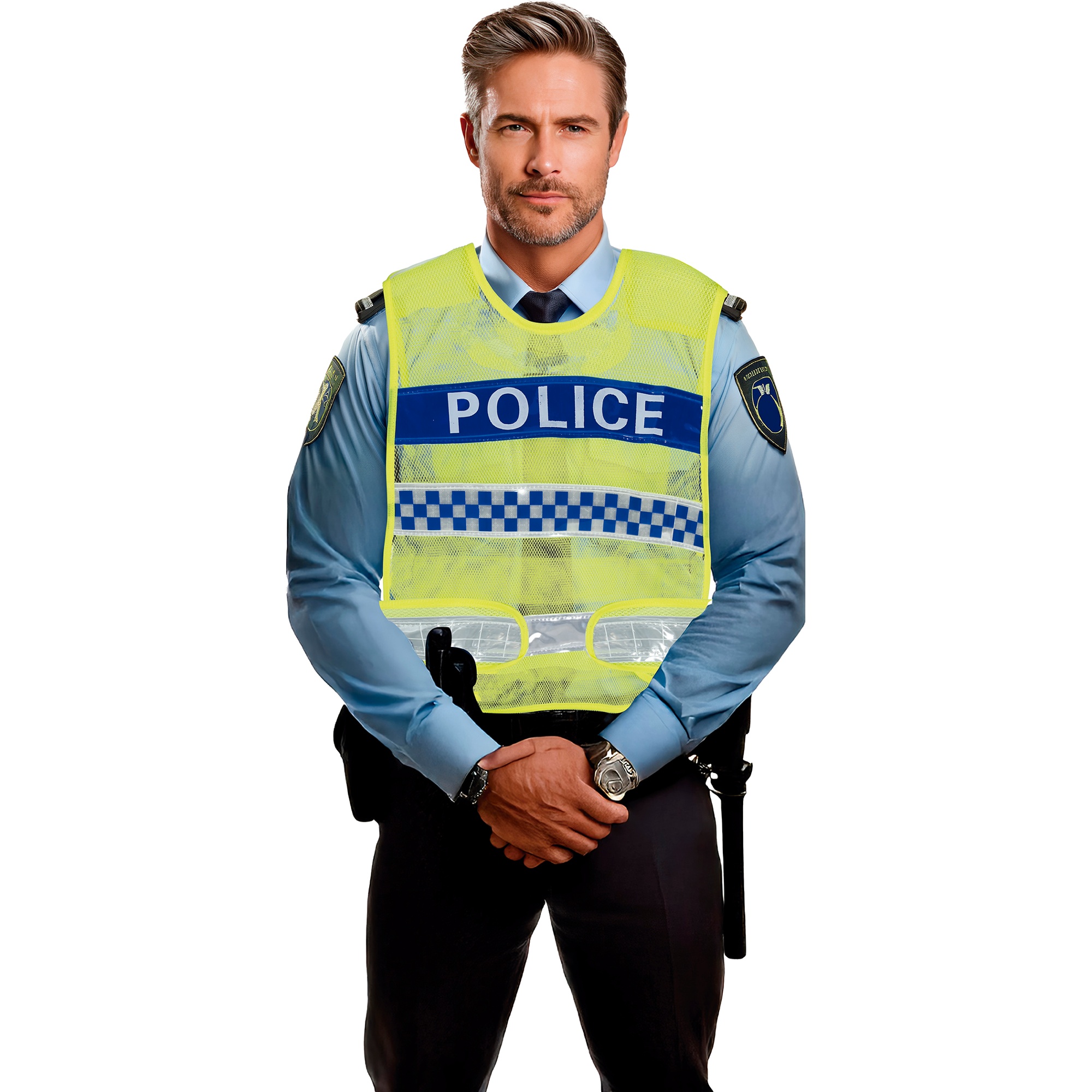 • Aspect réaliste avec l'inscription "POLICE" et des bandes à damier imitant les gilets officiels.