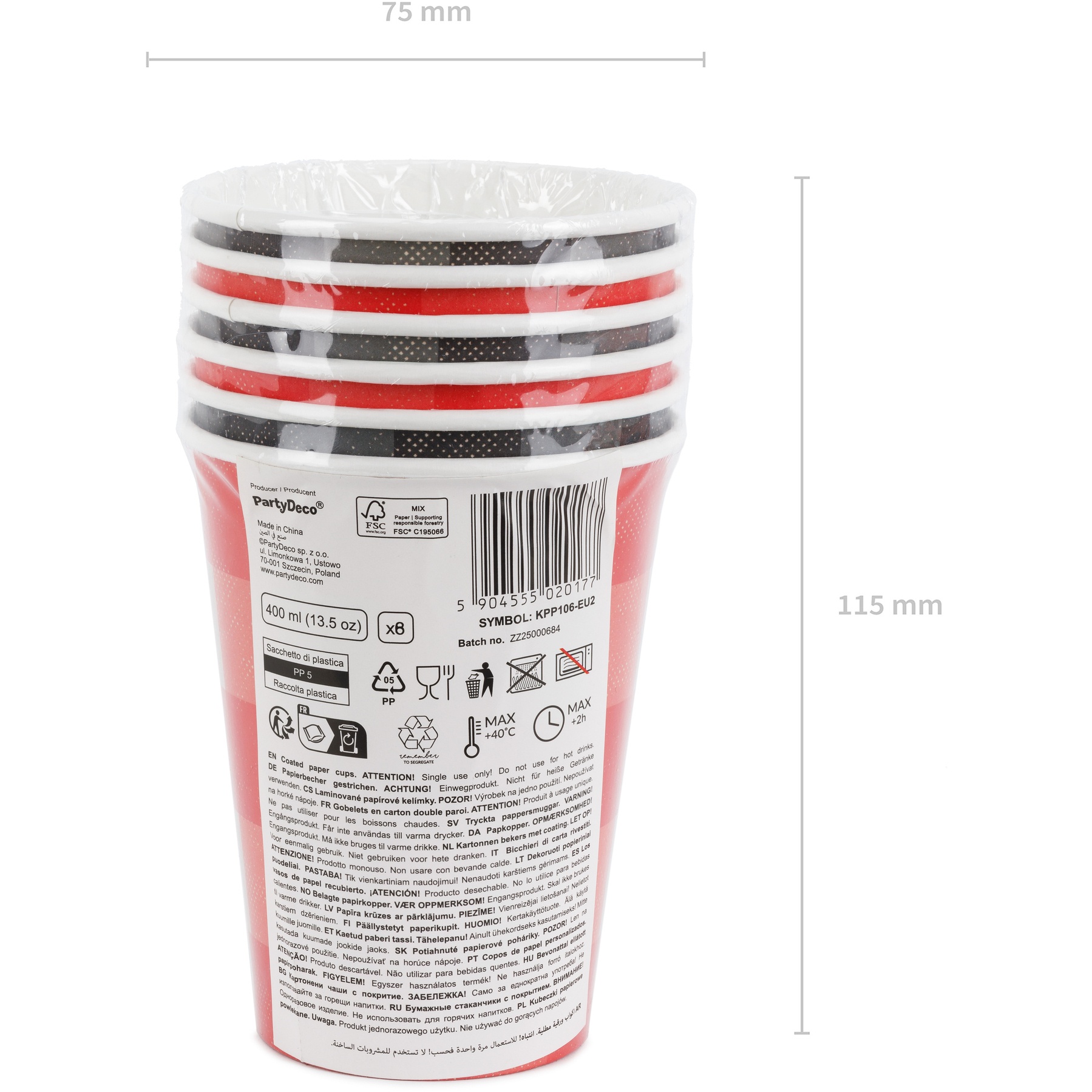 - Lot de 6 gobelets - parfaits pour vos barbecues et réceptions (motif à carreaux, rouge et noir).