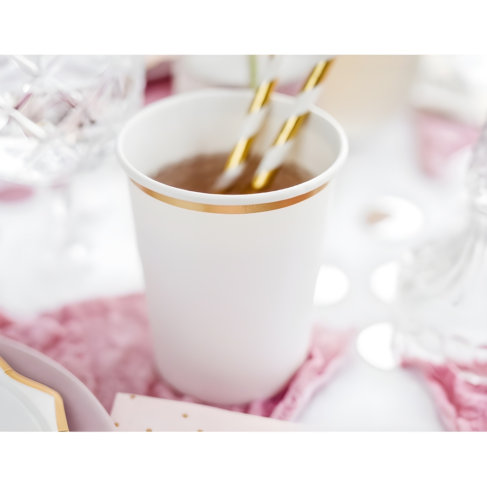 Gobelets en carton blancs avec bordure dorée de 260 ml - 6 unités