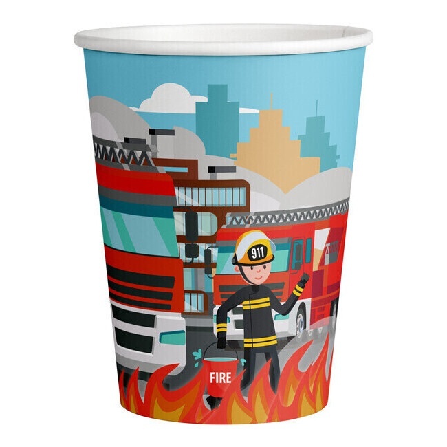 Complétez votre table d'anniversaire avec ces gobelets en carton de Pompiers, idéaux pour les fêtes d'enfants, garçons et filles.