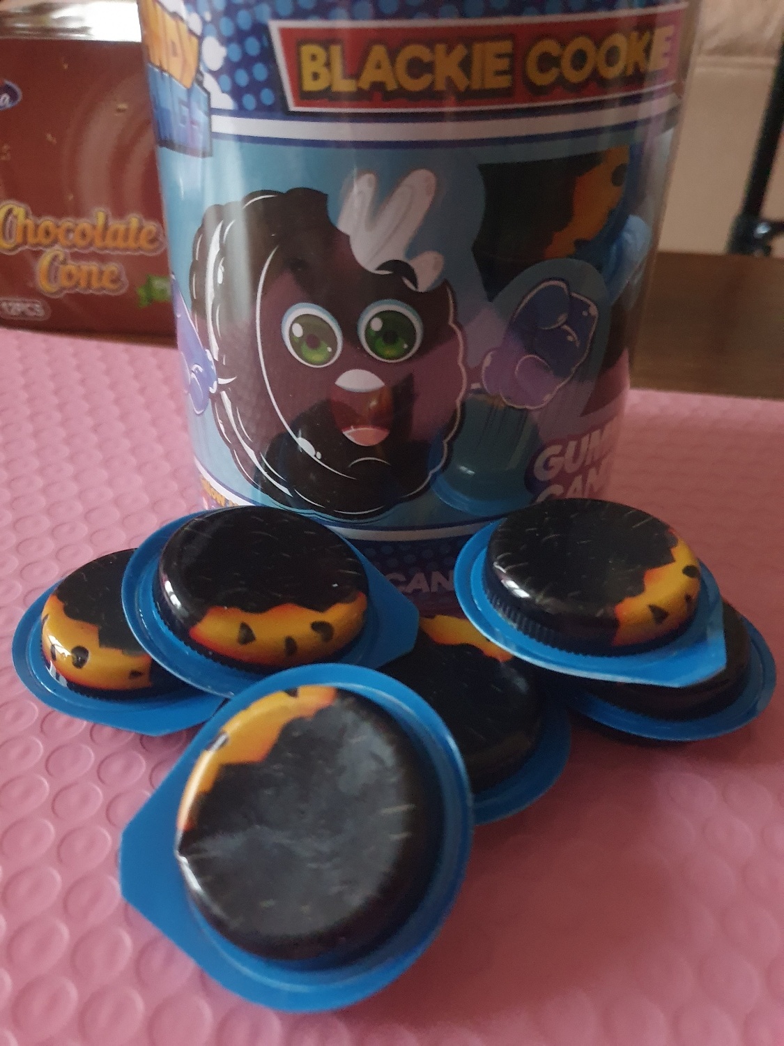 - Bonbons gélifiés enveloppés dans un plastique en forme de cookie.