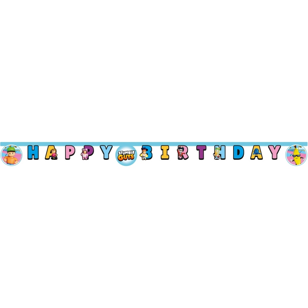 Guirlande « Happy Bday » au design Stumble Guys, conçue pour apporter une touche ludique et colorée aux anniversaires d'enfants. Fabriquée en papier certifié FSC, elle combine de grandes lettres et les personnages du jeu qui attirent les regards. Présentation: 1 unité par pack, prête à poser pour compléter la décoration de la fête que vous préparez.