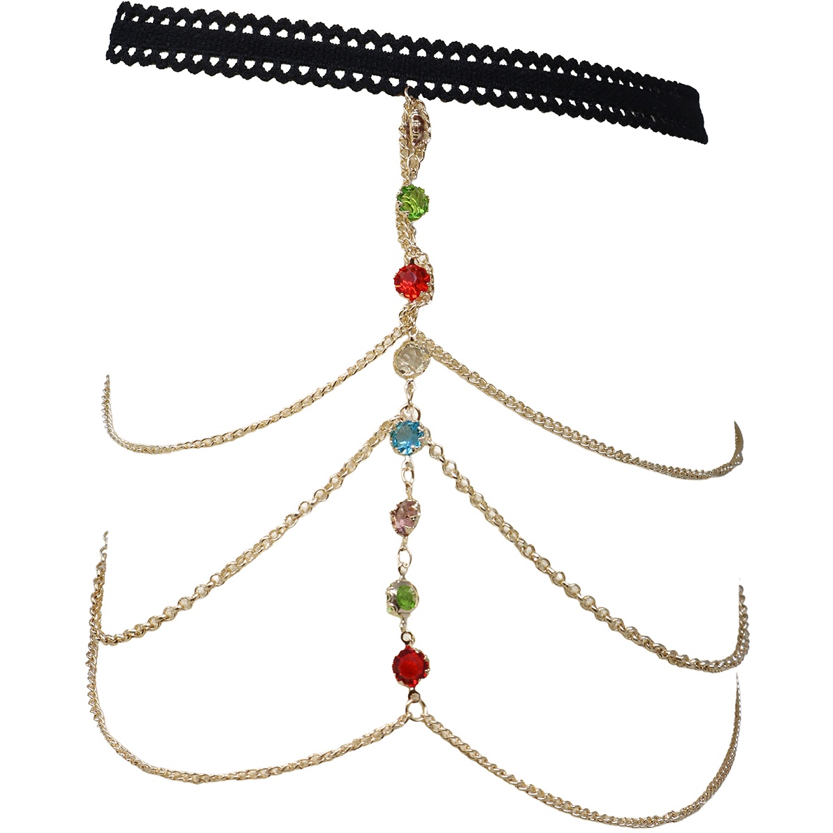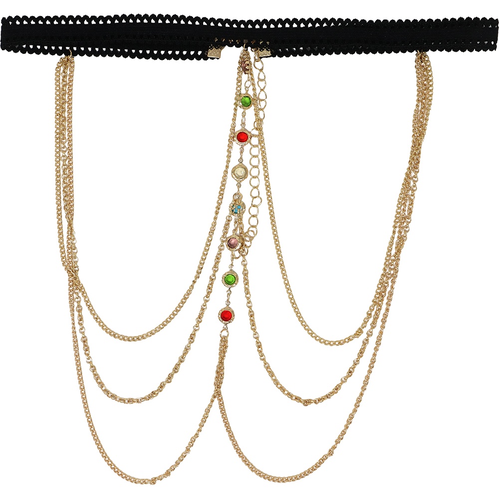 Jarretière à chaînes et pierres colorées