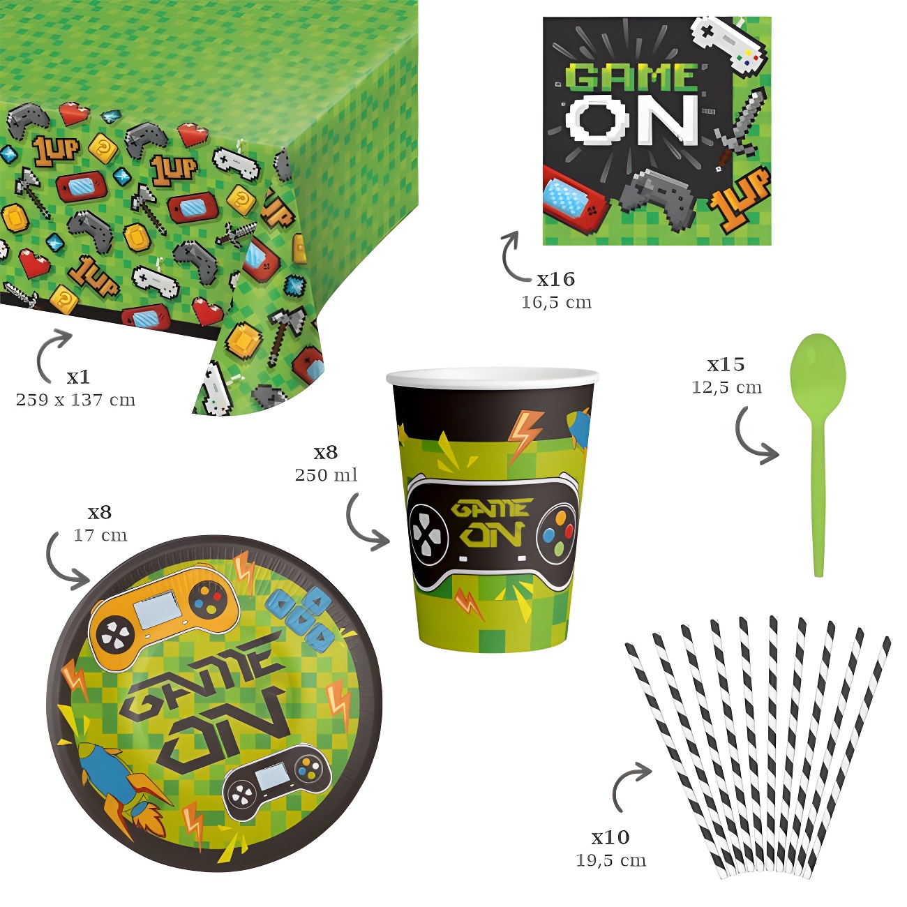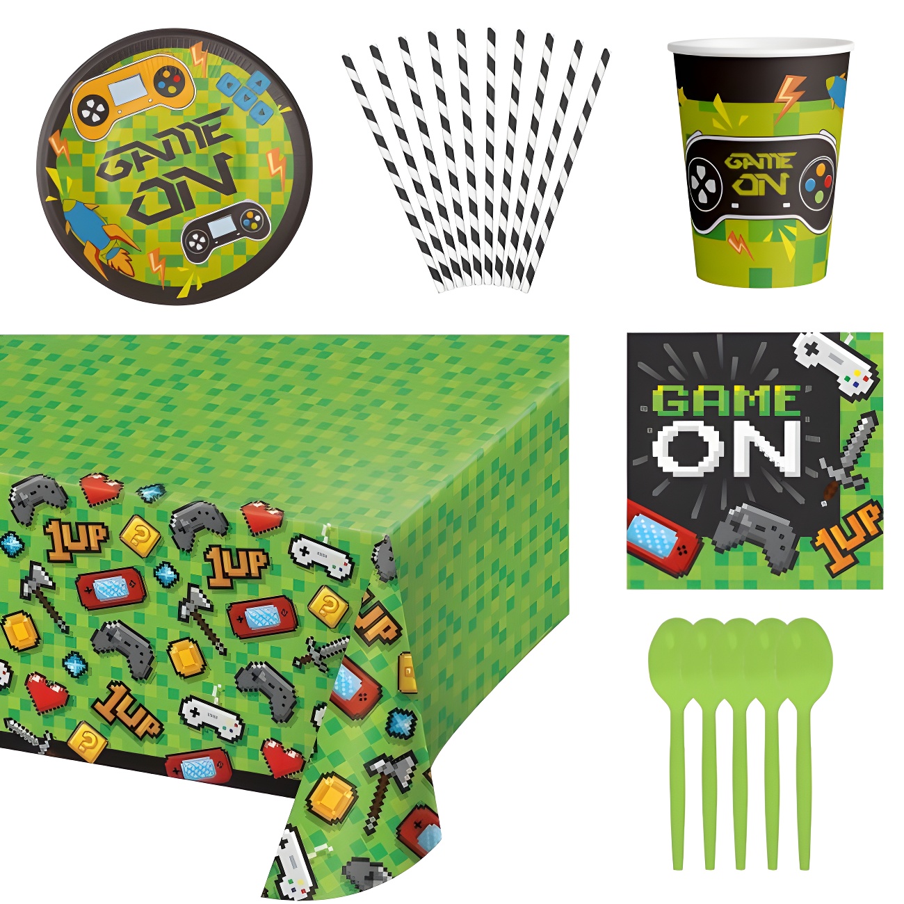 Pack pour fête de jeux vidéo vert - 8 personnes