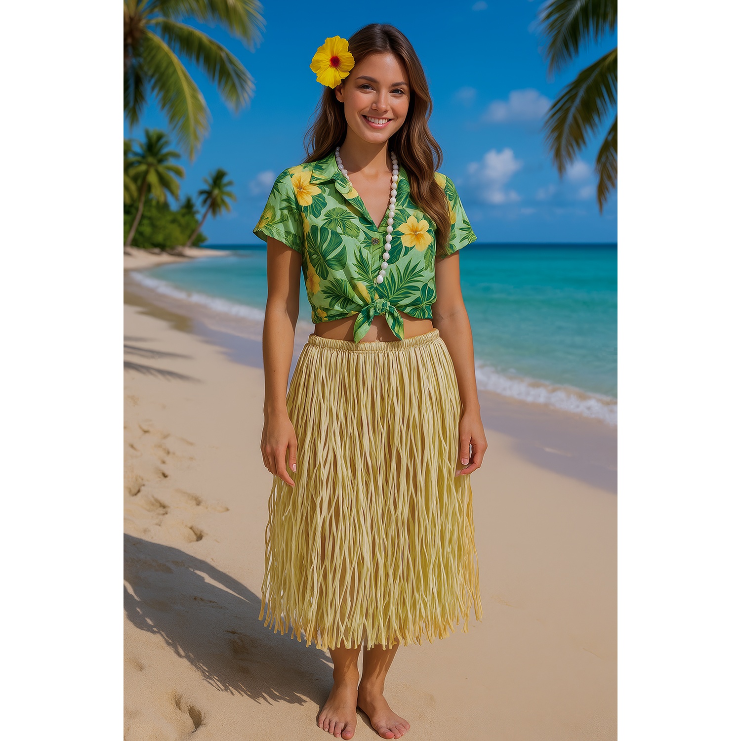 Jupe hawaïenne en paille, idéale pour compléter vos déguisements et looks tropicaux lors de fêtes et de luaus.