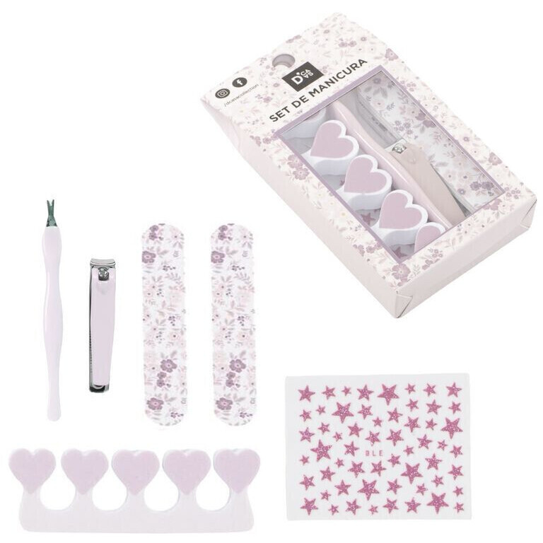 • Comprend: 1 repousse-cuticules, 1 coupe-ongles, 2 limes à ongles, 1 séparateur d'orteils et 1 autocollants.