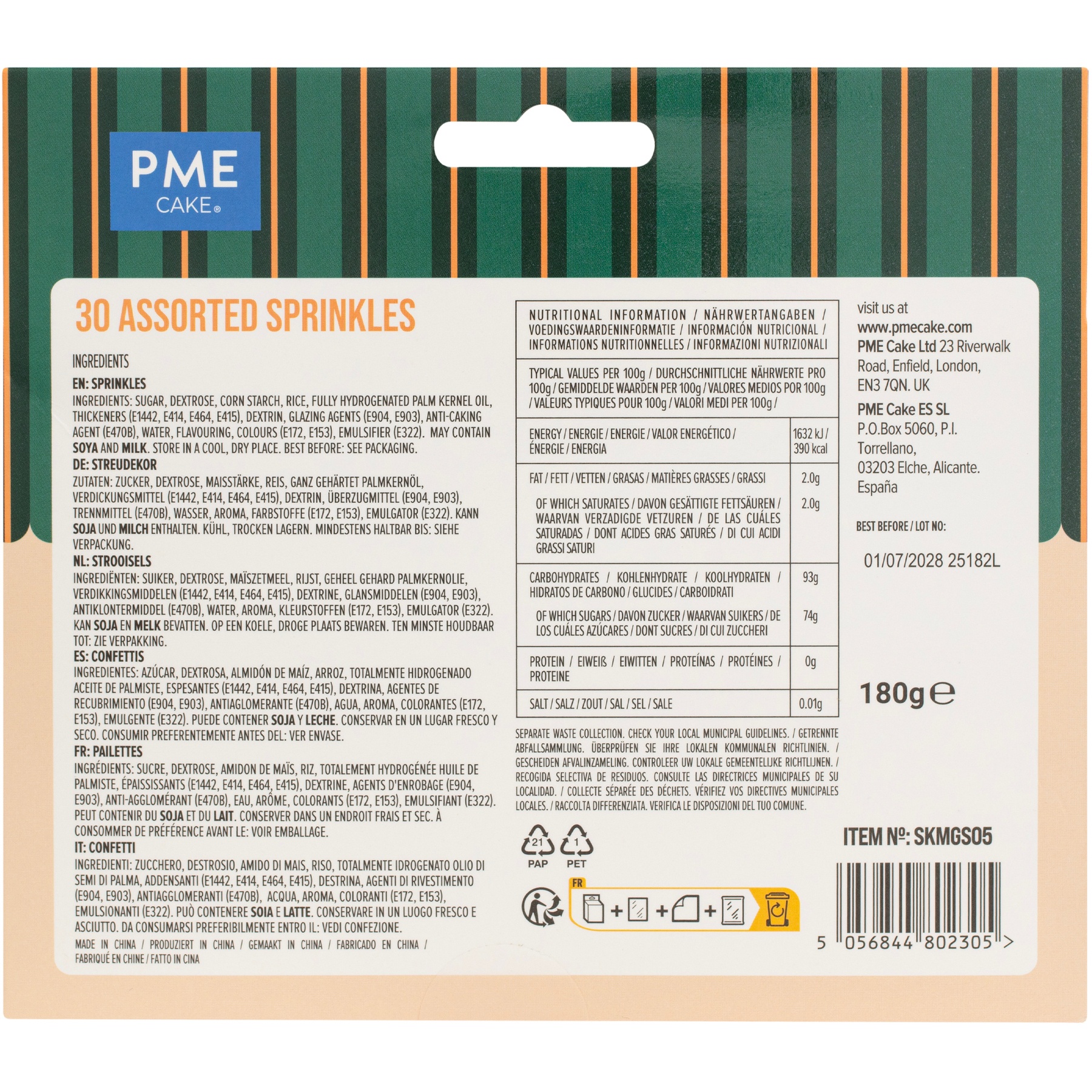 Kit de sprinkles métalliques 30 assortis - PME - 180 gr