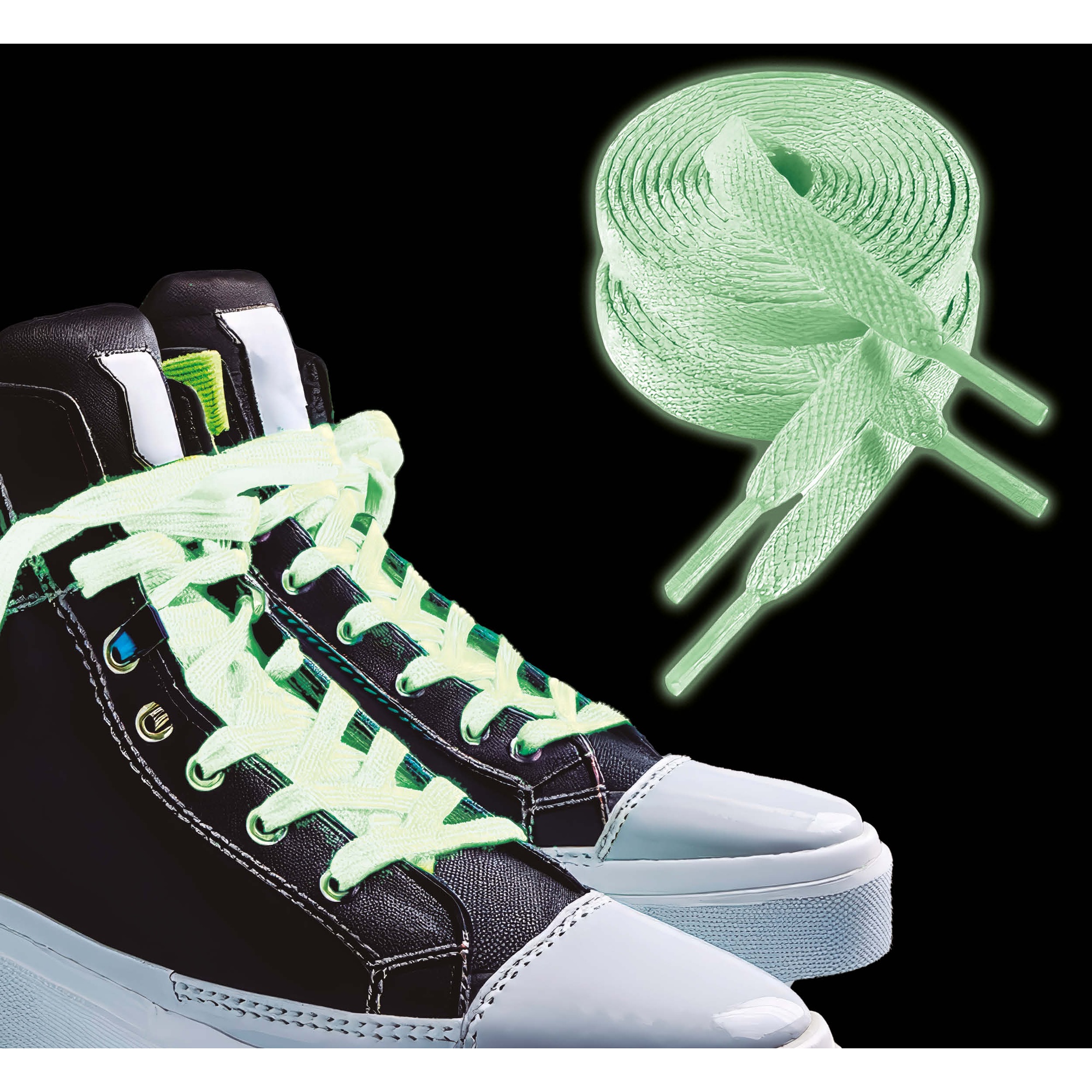 Paire de lacets fluorescents de 120 cm en polyester. Ils se rechargent à la lumière ambiante et émettent une luminosité intense dans l'obscurité pour mettre en valeur vos baskets. Leur profil plat et solide facilite le passage dans les oeillets et aide à maintenir le noeud en place. Longueur adaptée à la plupart des baskets urbaines et aux modèles type bottine, pour une finition moderne et bien visible en cas de faible luminosité.