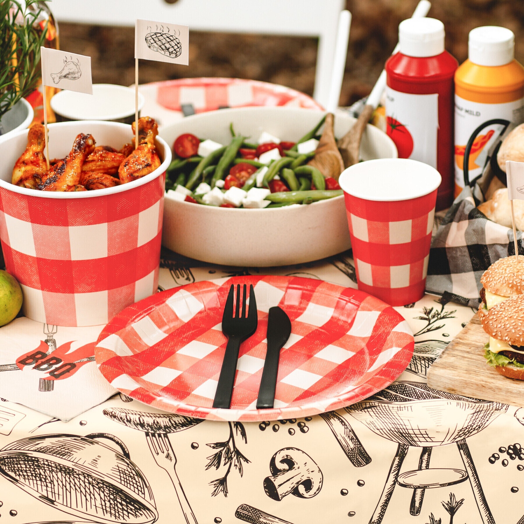 Riesgo de cortes y pinchazos: el cuchillo está dentado y las puntas del tenedor pueden causar lesiones; manipular con precaución.