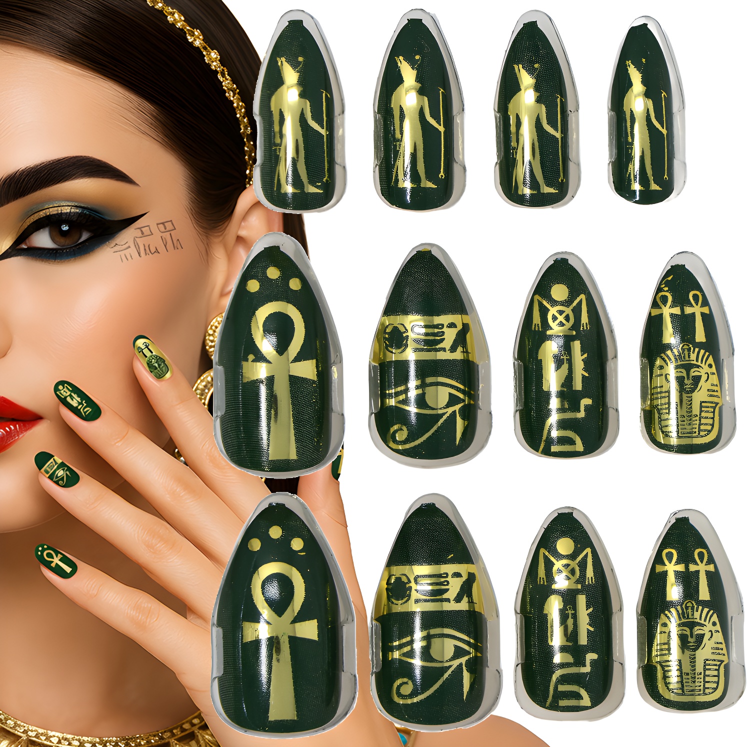 Lot de 12 ongles postiches style égyptien