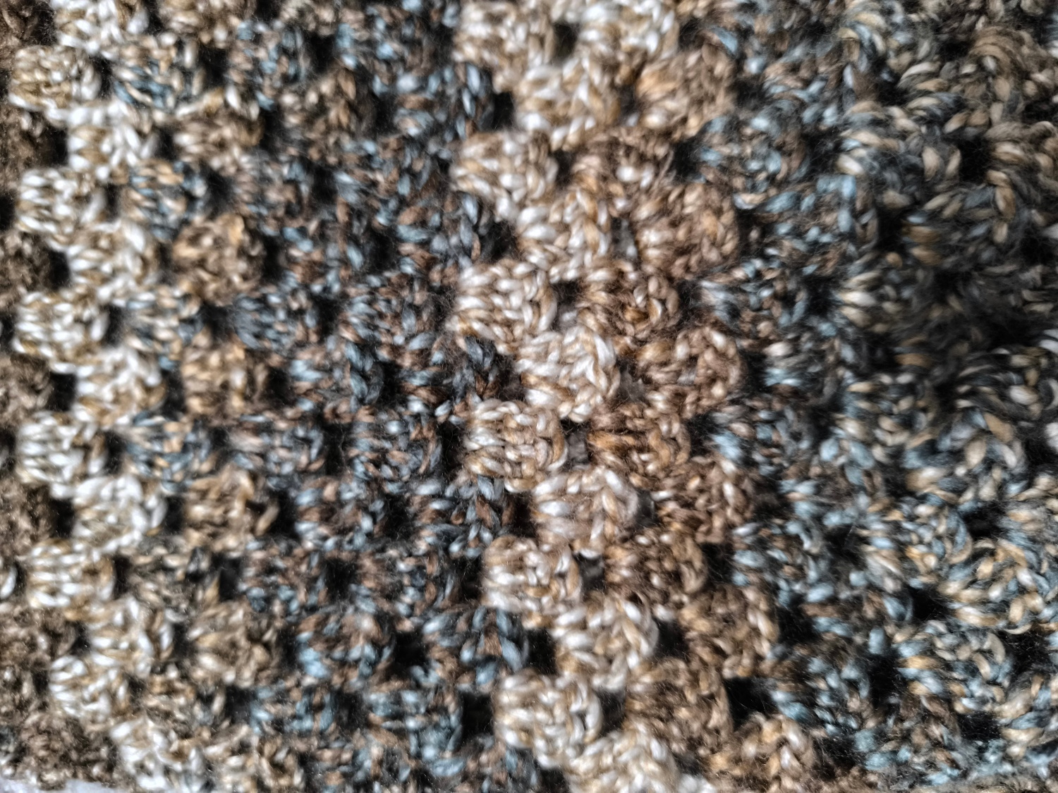 C'est la première fois que je travaille avec ce fil 100% acrylique, mais c'est une très bonne expérience. Il a une très belle séquence de couleurs, il est doux et agréable au toucher... Il est très chaud et c'est un plaisir de crocheter avec. Il se travaille très bien au crochet.