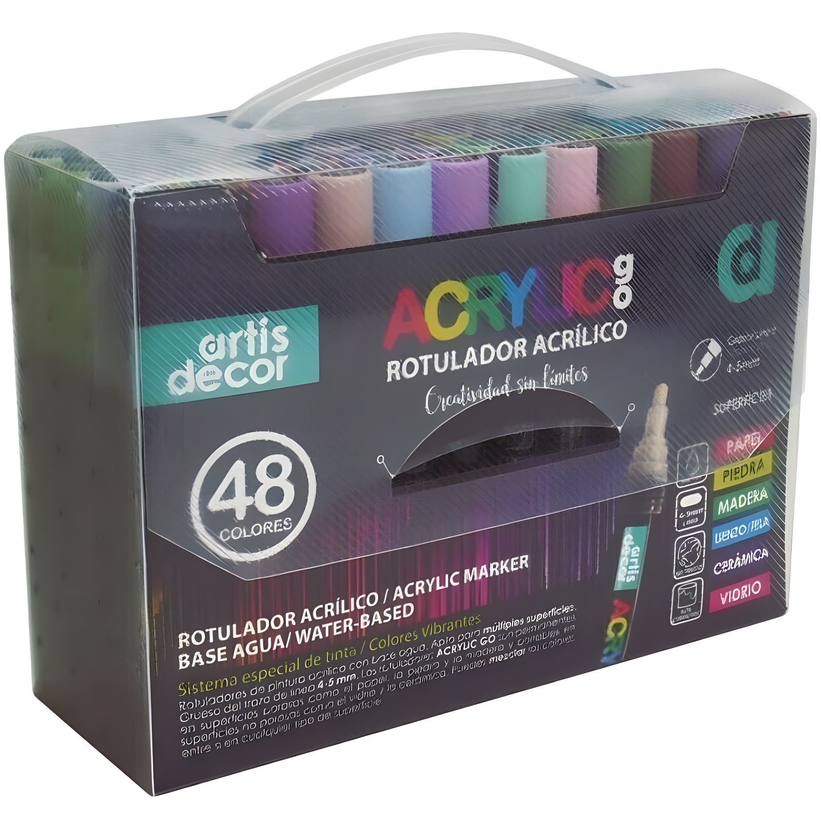 - Boîte de 48 marqueurs acryliques à base d'eau.
