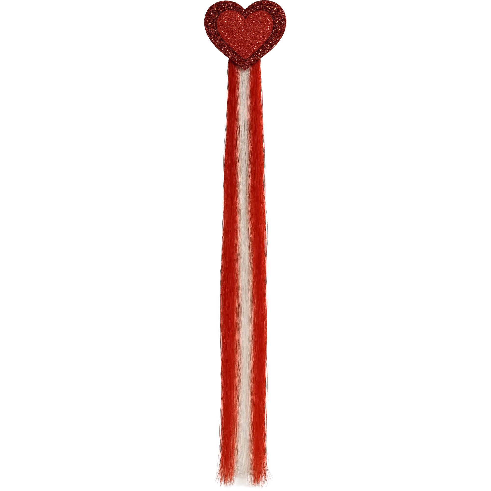 Apportez une touche romantique et colorée à votre coiffure avec cette mèche de 40 cm ornée d'un coeur en feutre. Le coeur décoratif retient des bandes de fibres synthétiques rouge et crème qui tombent naturellement pour un effet saisissant. Elle se fixe à l'aide d'un clip discret, facile à poser et à retirer sans abîmer les cheveux. Légère et confortable, elle ajoute une note féminine et ludique à votre look.