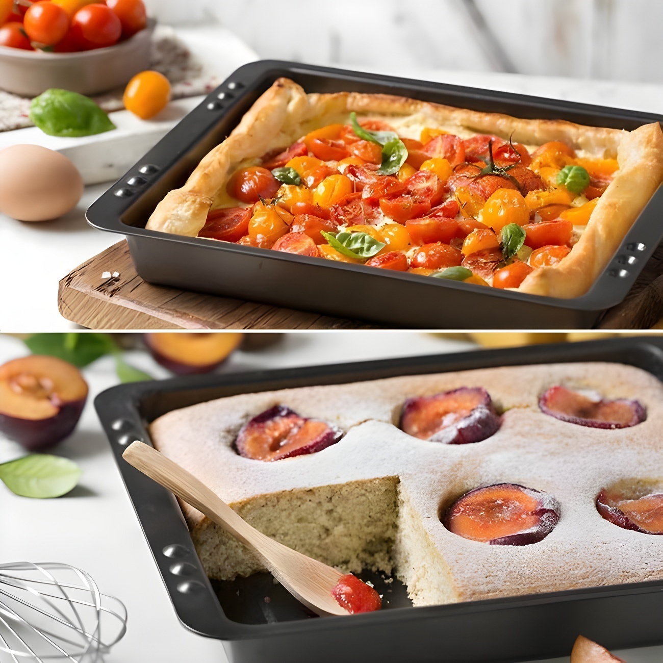 Moule idéal pour des recettes aussi bien sucrées que salées. Les petits trous des poignées du moule vous permettent de superposer un autre identique en l'utilisant comme couvercle.