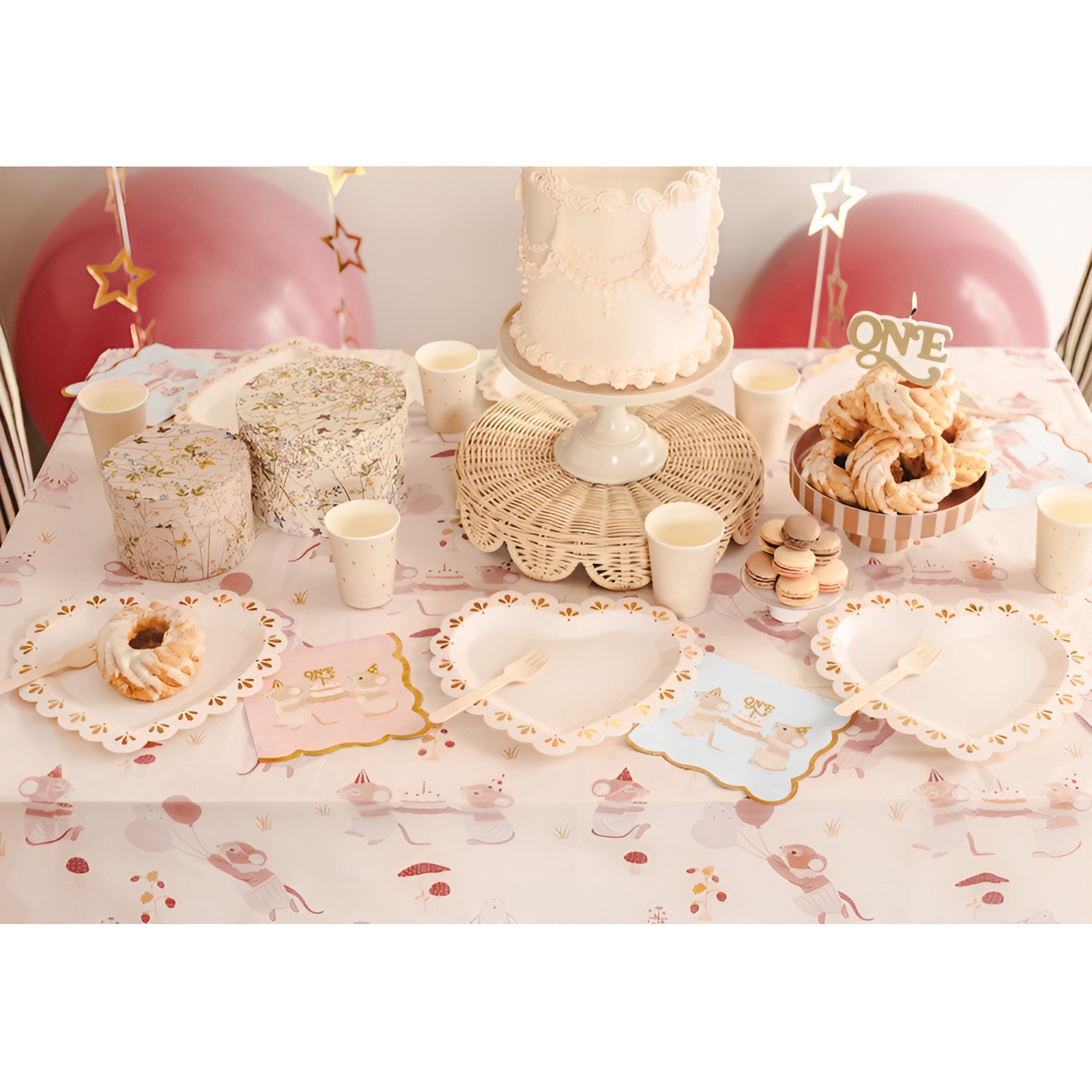 Nappe en papier "Mice" beige au délicat motif de petites souris. Dimensions déployées: 180 x 120 cm. Pensée pour apporter une touche tendre et harmonieuse aux tables d'enfants, elle vous permet de décorer facilement et de ranger rapidement après l'événement. Son rendu neutre s'accorde avec de nombreux styles et couleurs, tandis que sa finition mate valorise le motif pour une table soignée.