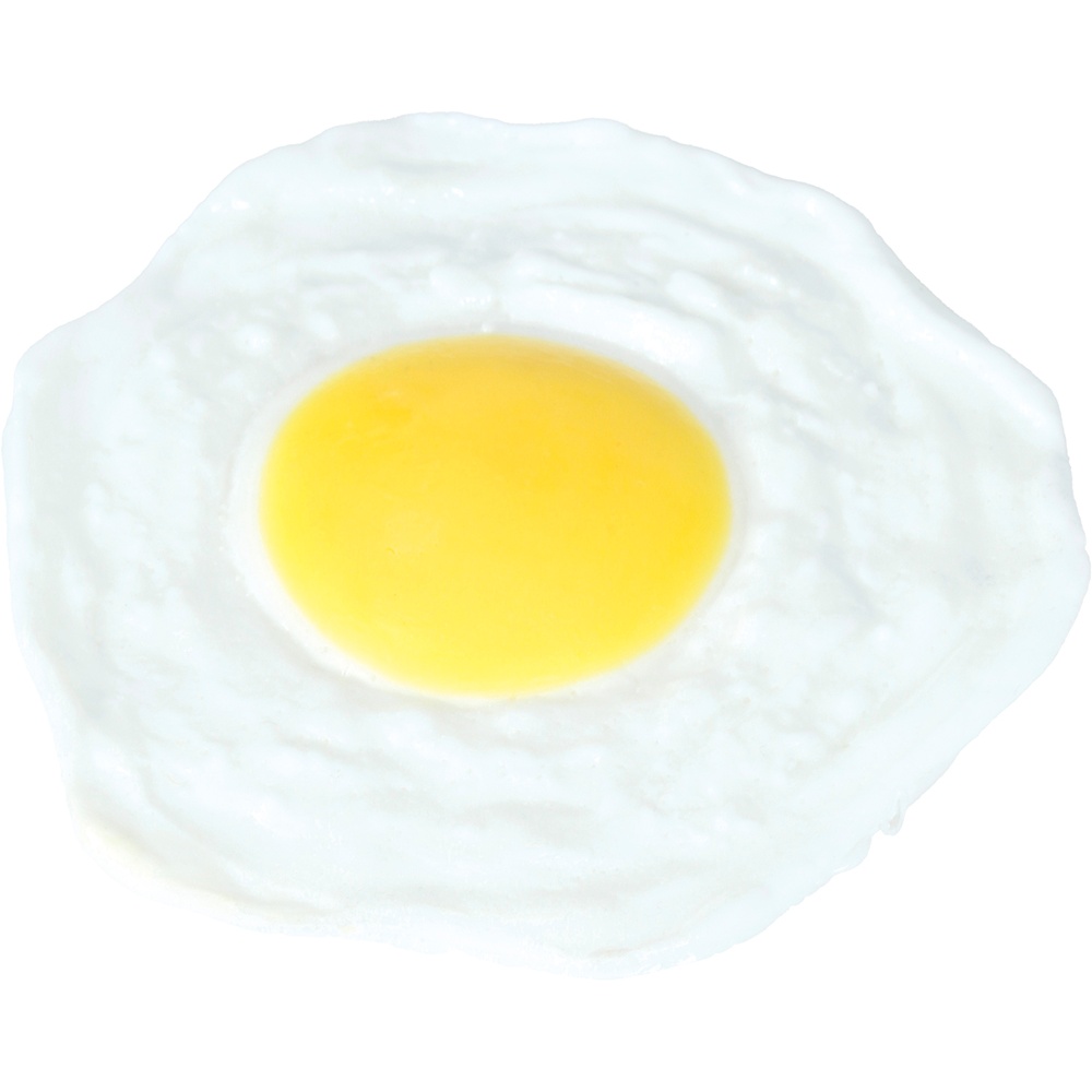 • Latex souple reproduisant la forme et le toucher d'un oeuf au plat.