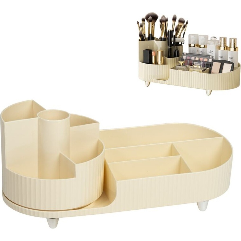 Organisez votre coiffeuse avec un design pratique et élégant, pensé pour garder à portée de main pinceaux, rouges à lèvres, palettes et flacons. Les compartiments de tailles variées facilitent le tri et l'accès rapide à vos produits préférés. La base surélevée assure stabilité et apporte une finition soignée qui s'intègre à tous les intérieurs.