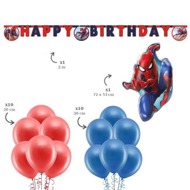 Il s'agit d'un pack avec tout le nécessaire pour profiter d'une fête à thème de Spiderman.