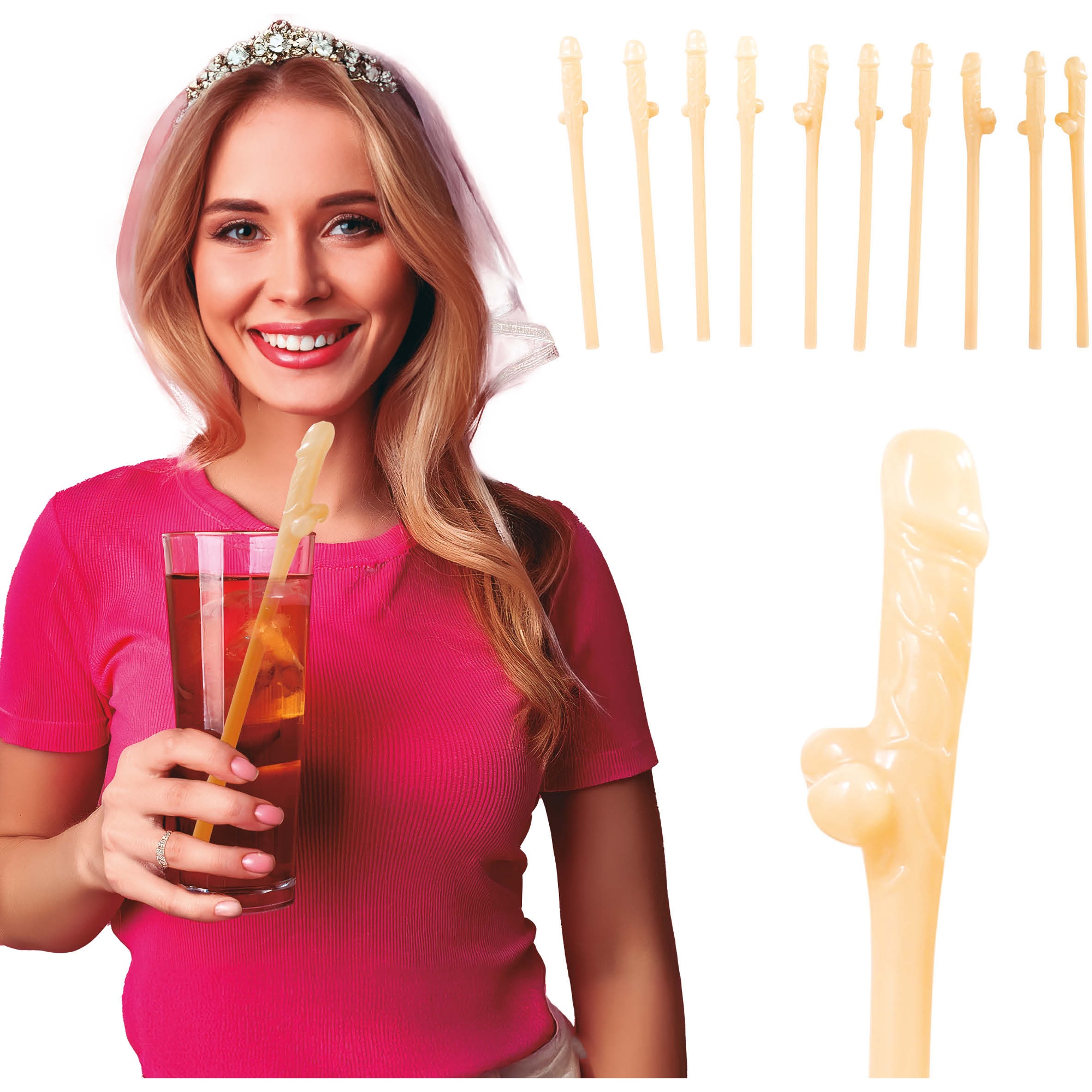 Lot de 10 pailles au design amusant en forme de pénis, conçues pour animer vos enterrements de vie de jeune fille.