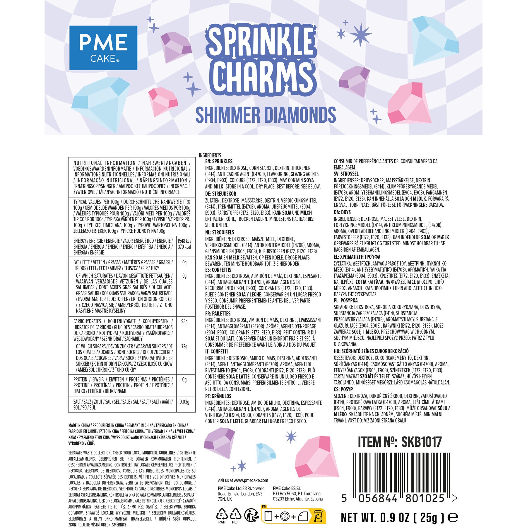 Ingrédients: dextrose, amidon de maïs, dextrine, épaississant (E414), agent anti-agglomérant (E470B), arôme, agents d'enrobage (E904, E903), colorants (E172, E120, E133).