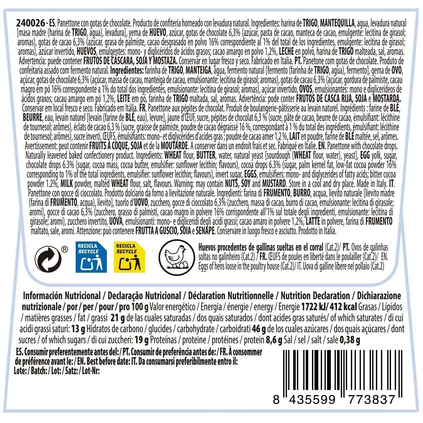 - Allergènes: Céréales contenant du gluten et dérivés, Fruits à coque et dérivés, Oeuf et dérivés, Lait incluant lactose et dérivés, Moutarde et dérivés, Soja et dérivés.