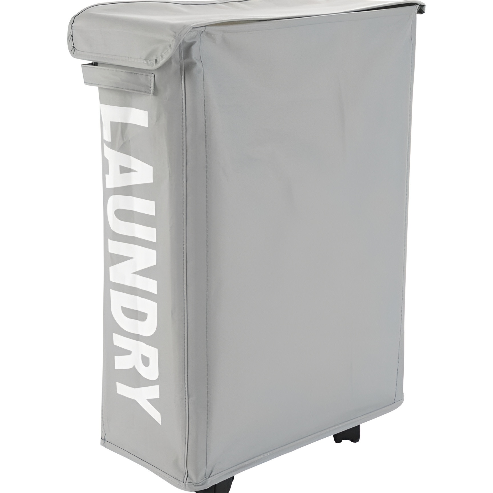 Design vertical sur roulettes pour un transport aisé et couvercle supérieur qui maintient le linge bien rangé et hors de vue.