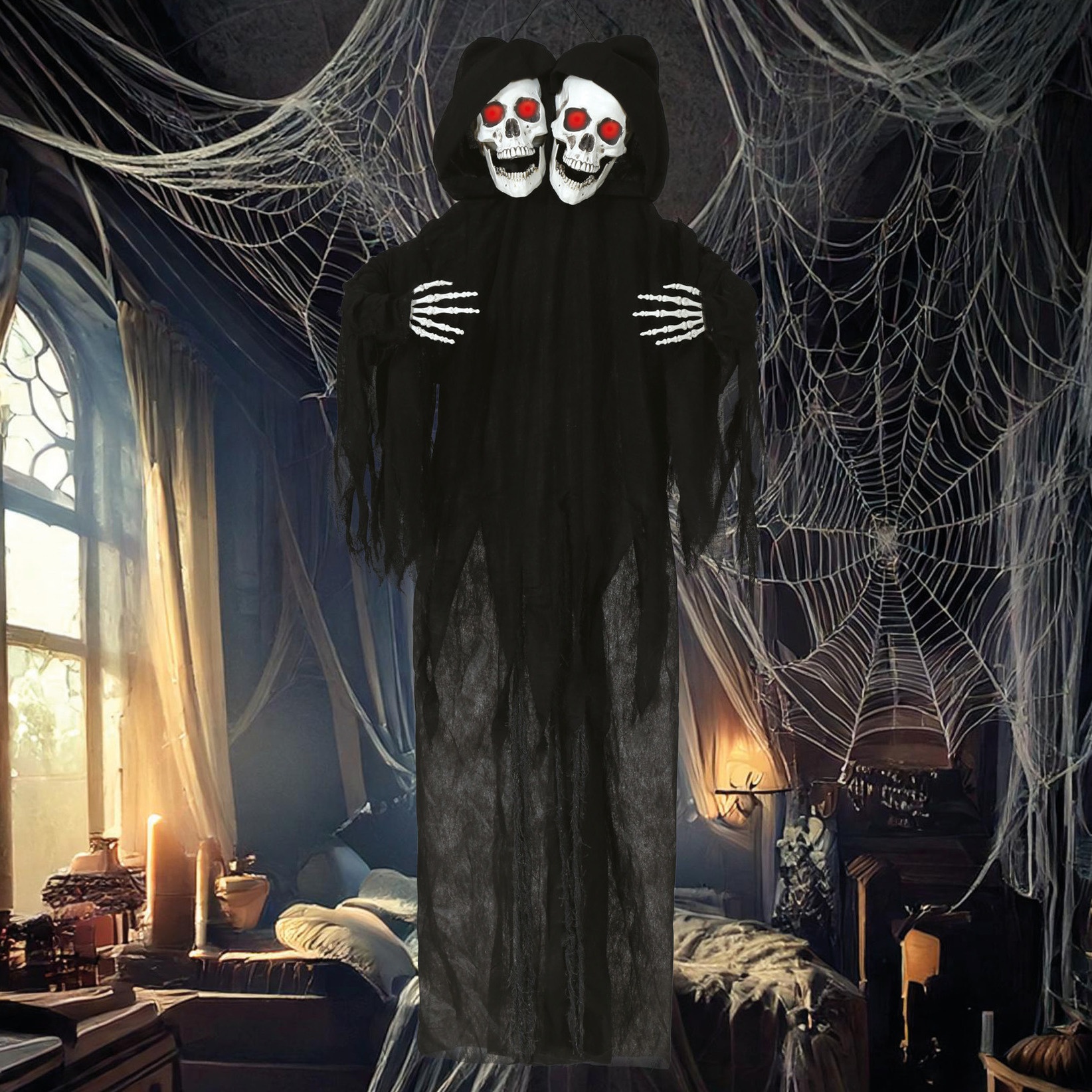 Pendentif double crâne avec lumière et son de 1,70 m