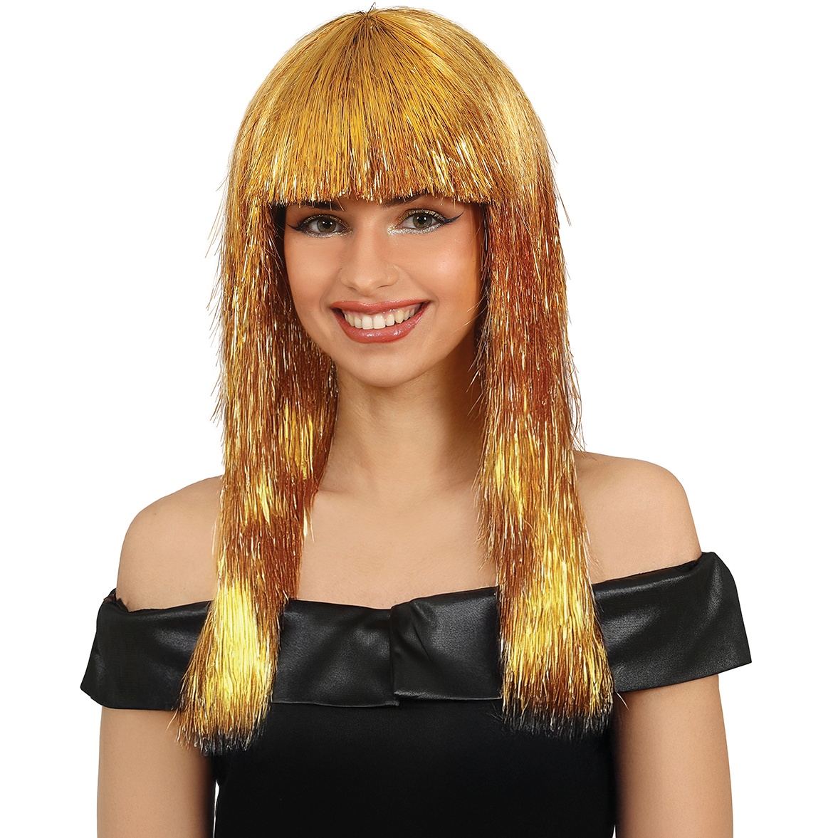 Transformez instantanément votre apparence avec cette perruque style Cléopâtre, à longue chevelure et frange droite.
