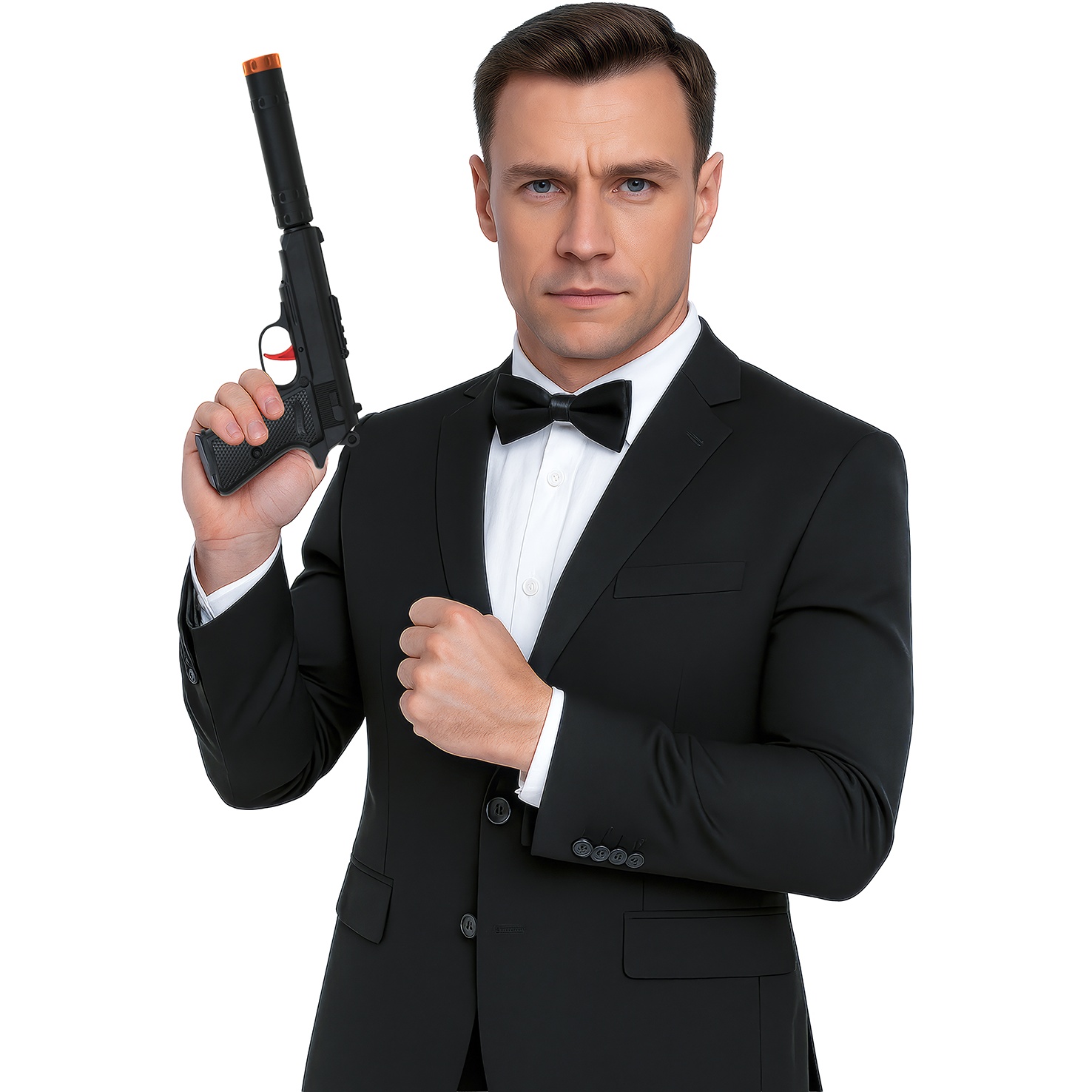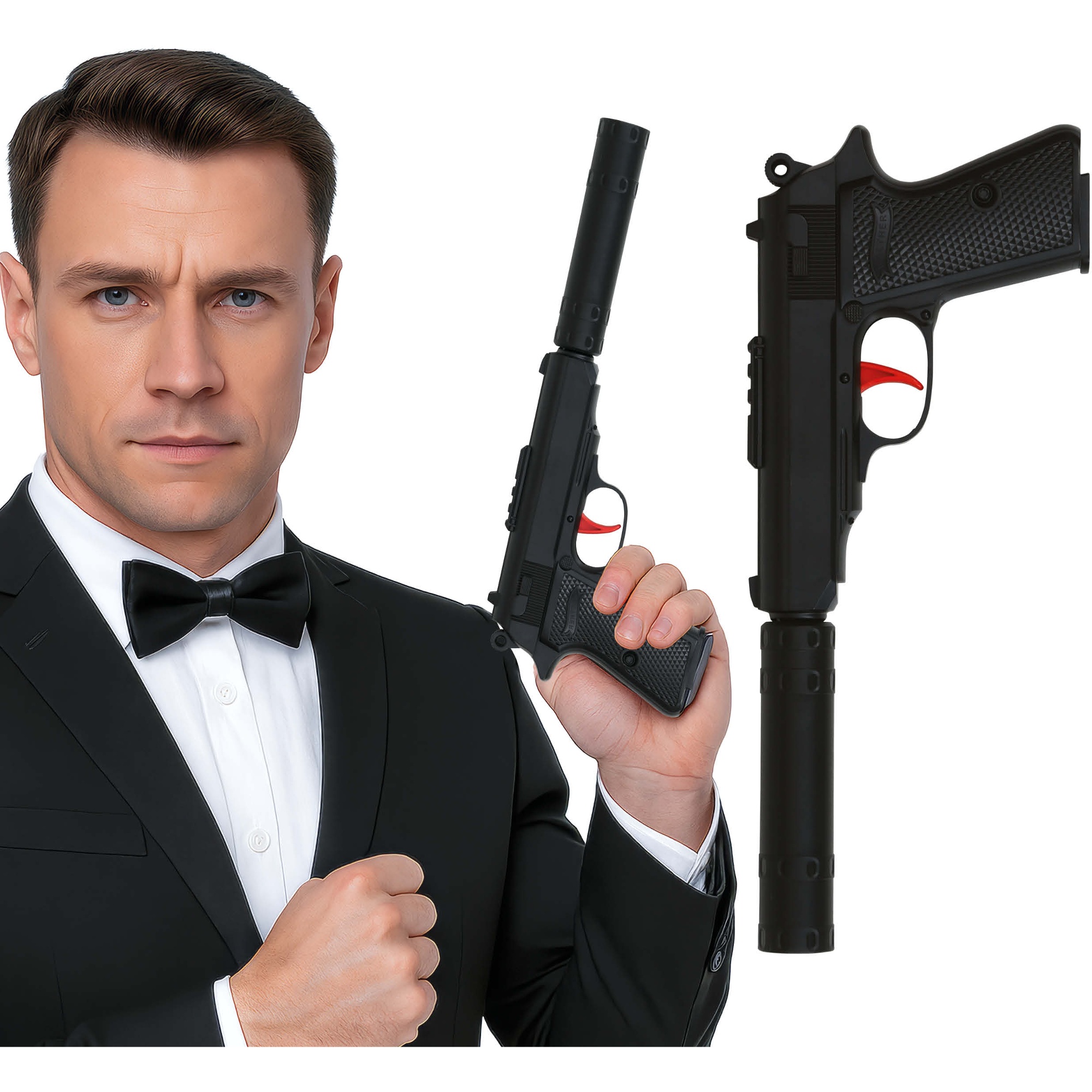 Réplique jouet avec silencieux, idéale pour compléter votre tenue d'agent secret ou pour créer l'ambiance lors de soirées à thème. Fabriqué en PVC, il allie un aspect réaliste à un poids léger pour un port agréable en main. Sa longueur d'environ 29 cm le rend facile à saisir et à manipuler lors de photocalls, carnavals et autres événements.