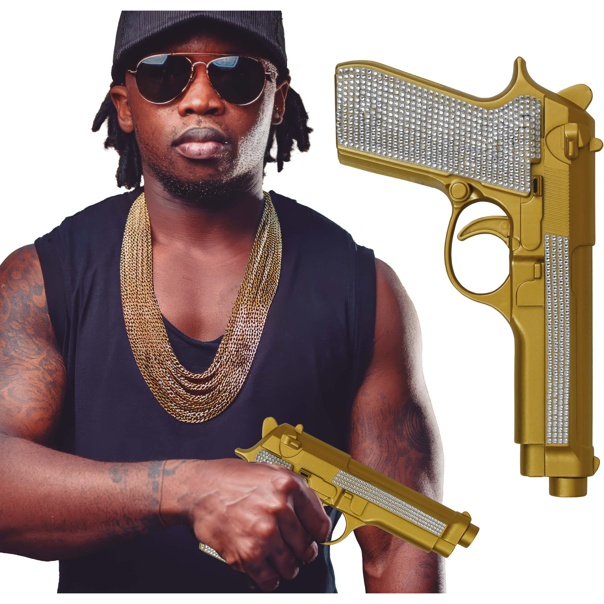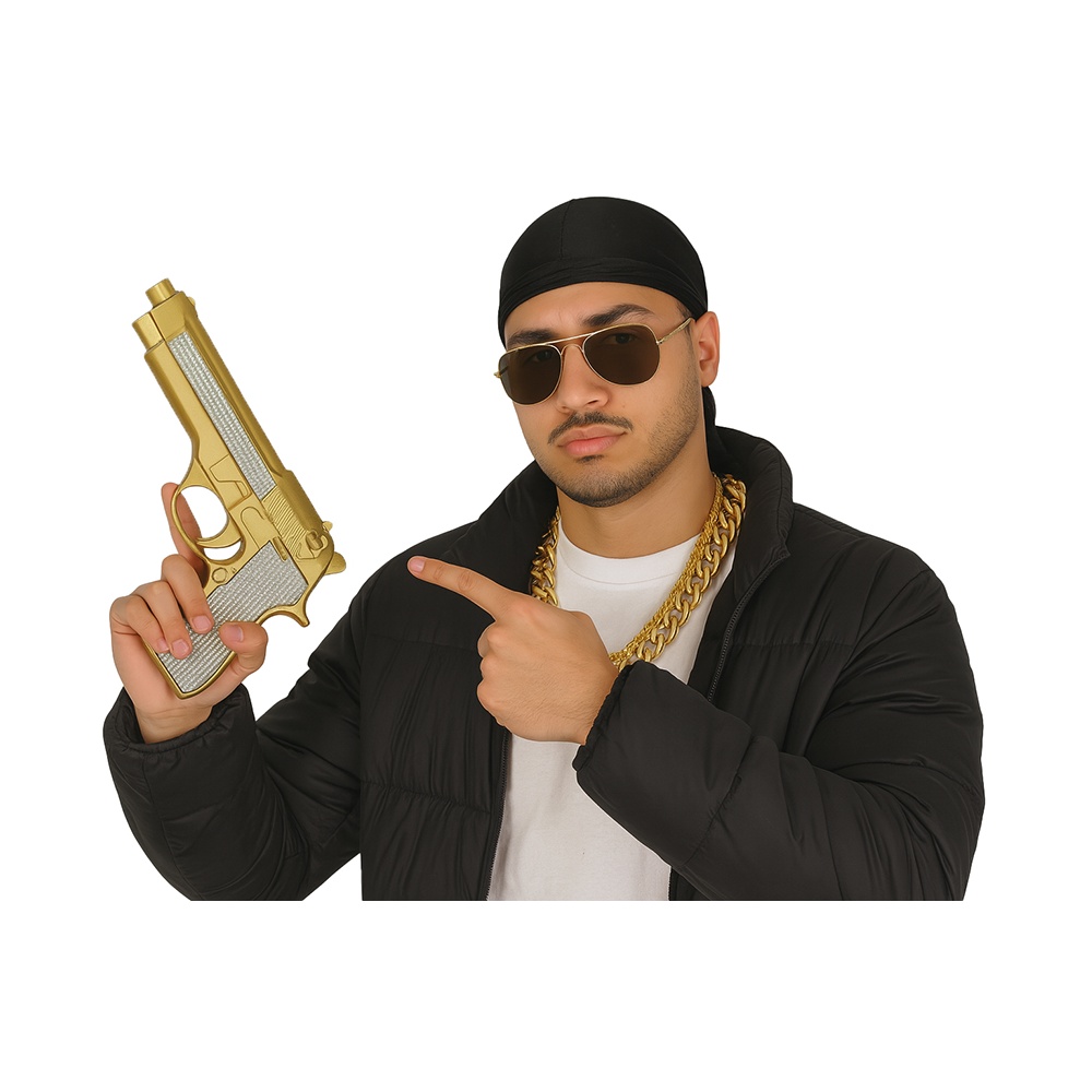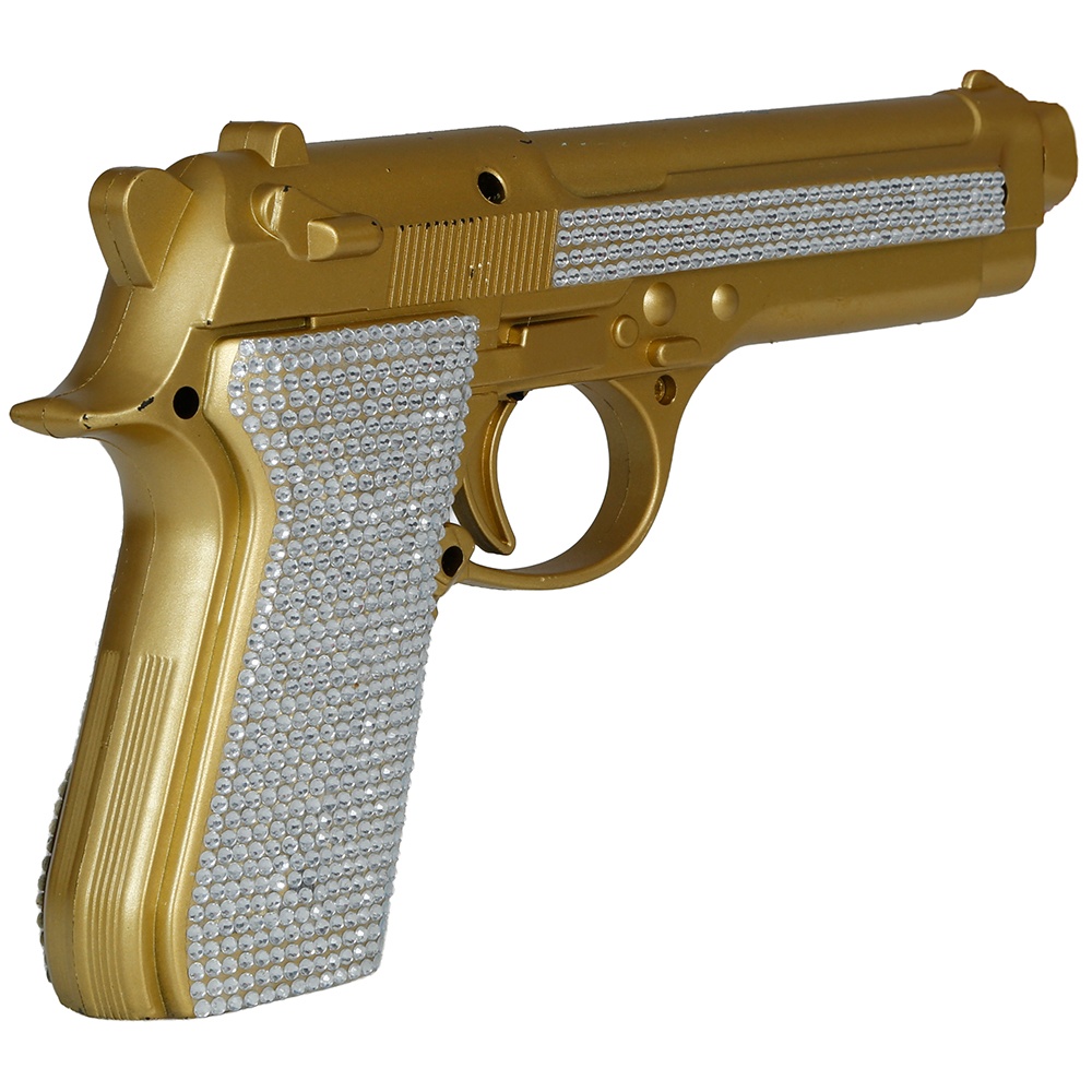 Pistolet décoratif de 25 cm, finition dorée et ornements en strass pour une touche résolument glamour.