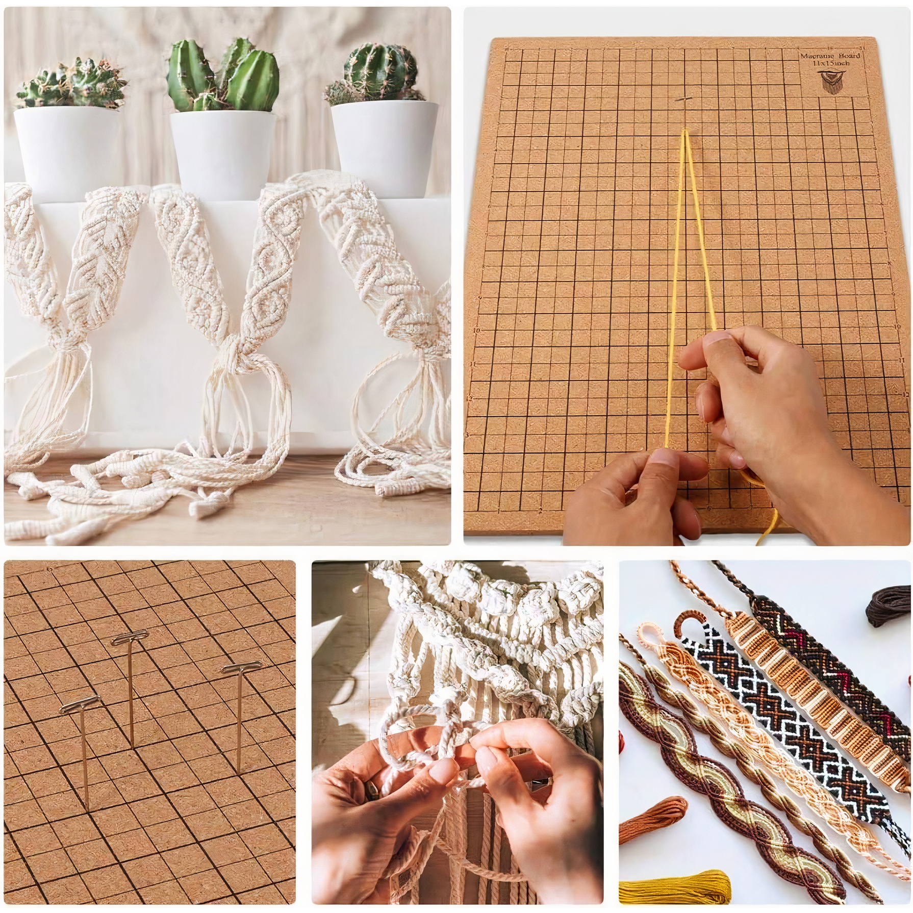 • Cette planche de macramé vous permet de maintenir et de fixer les fils pendant le tressage.