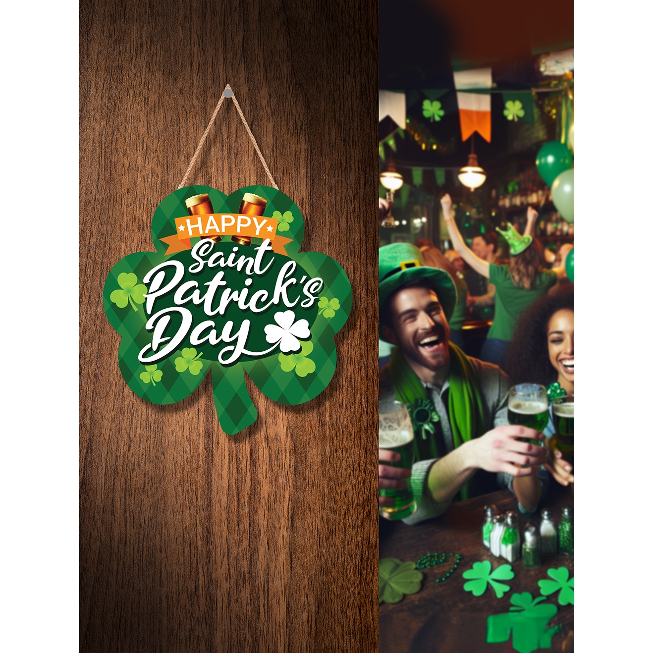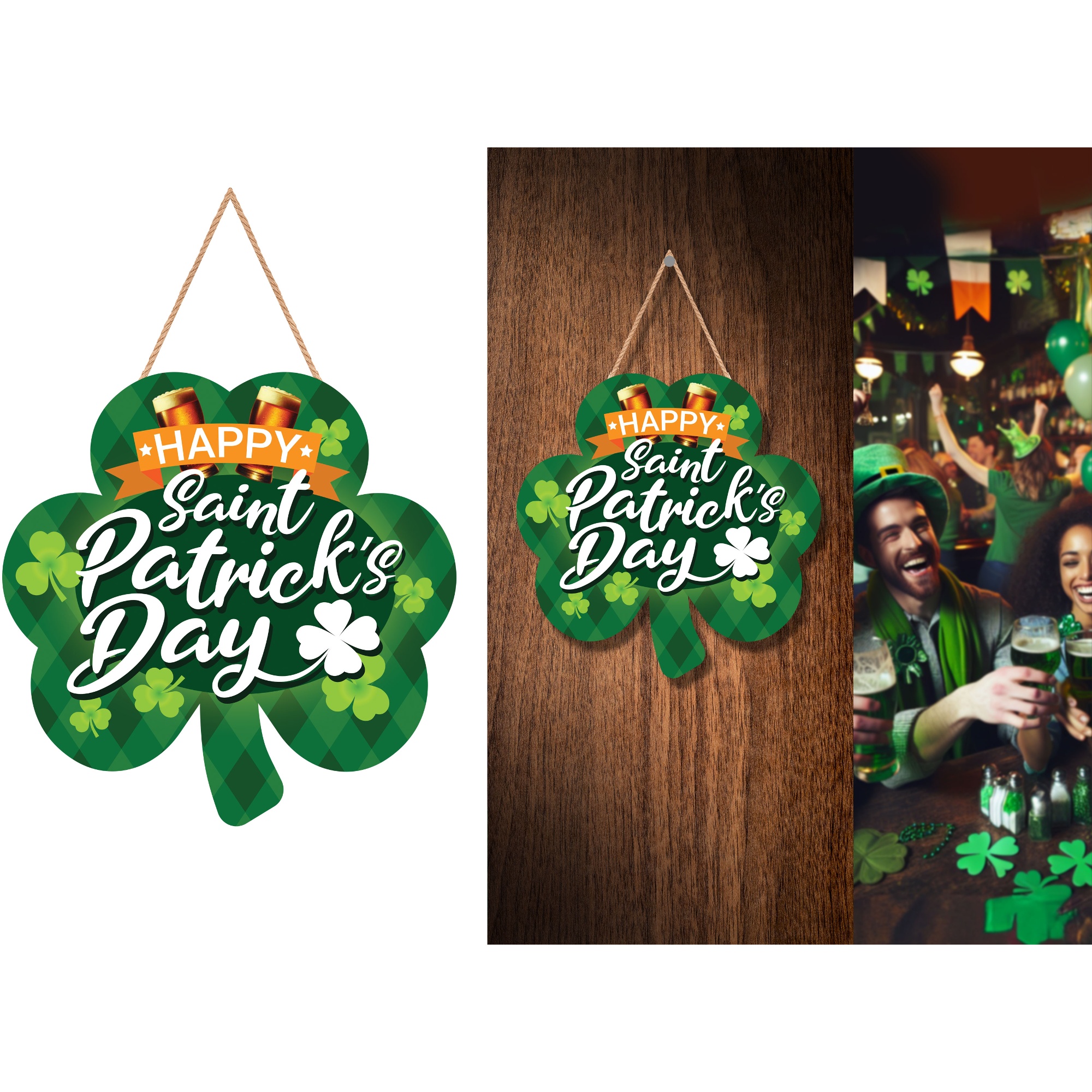 Comprend une corde pour l'accrocher et une finition qui met en valeur les verts traditionnels, idéal pour pubs, bars et réunions de la Saint-Patrick.