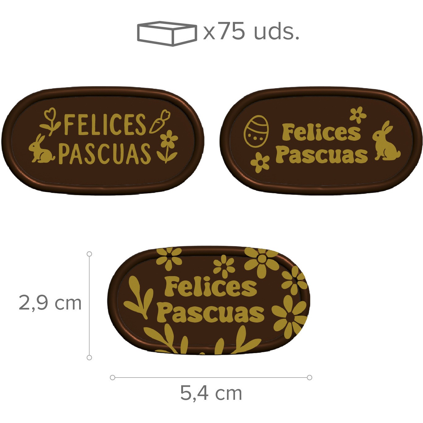 Plaquette en chocolat noir "Joyeuses Pâques" 5,4 x 2,9 cm - 75 unités