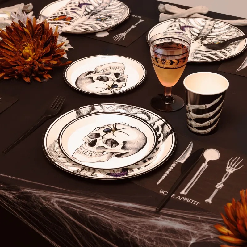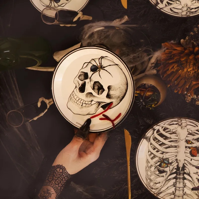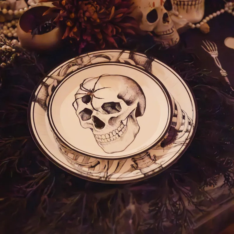 Plats avec un motif de squelette et insectes de 17 cm - 6 unités