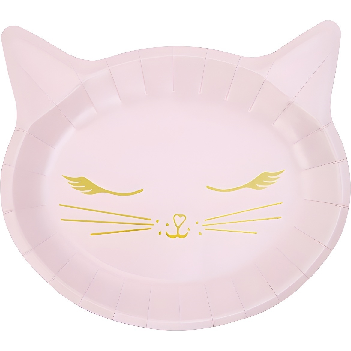 Assiettes Chatons roses avec moustaches dorées de 20 x 22 cm - 6 unités