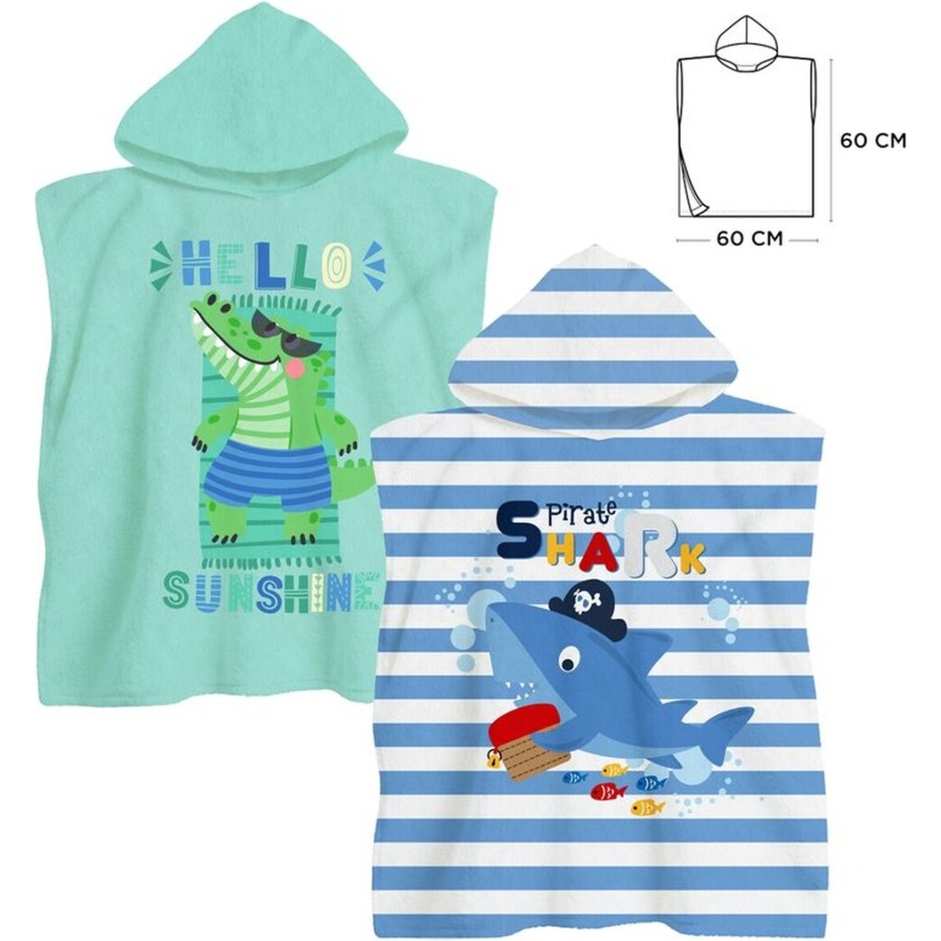 Poncho-serviette dinosaure ou requin à capuche - 1 unité