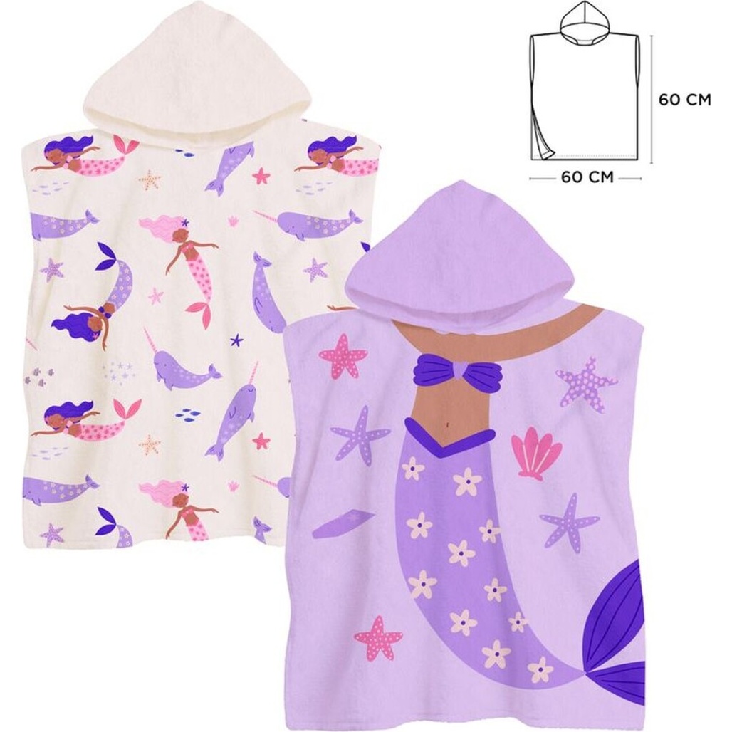 Poncho-serviette sirène avec capuche - 1 unité