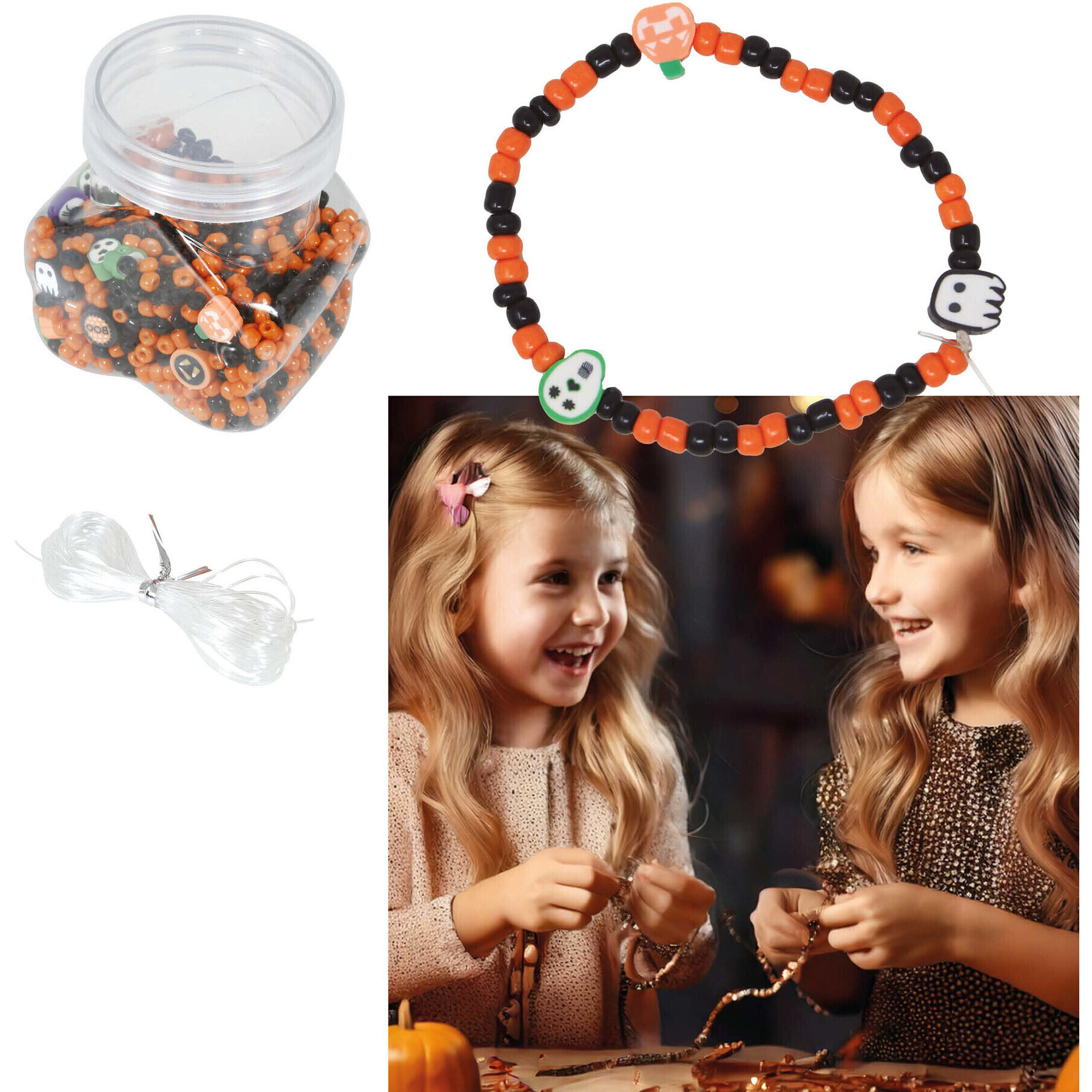 Pot de perles pour bracelets d'Halloween - 1300 unités