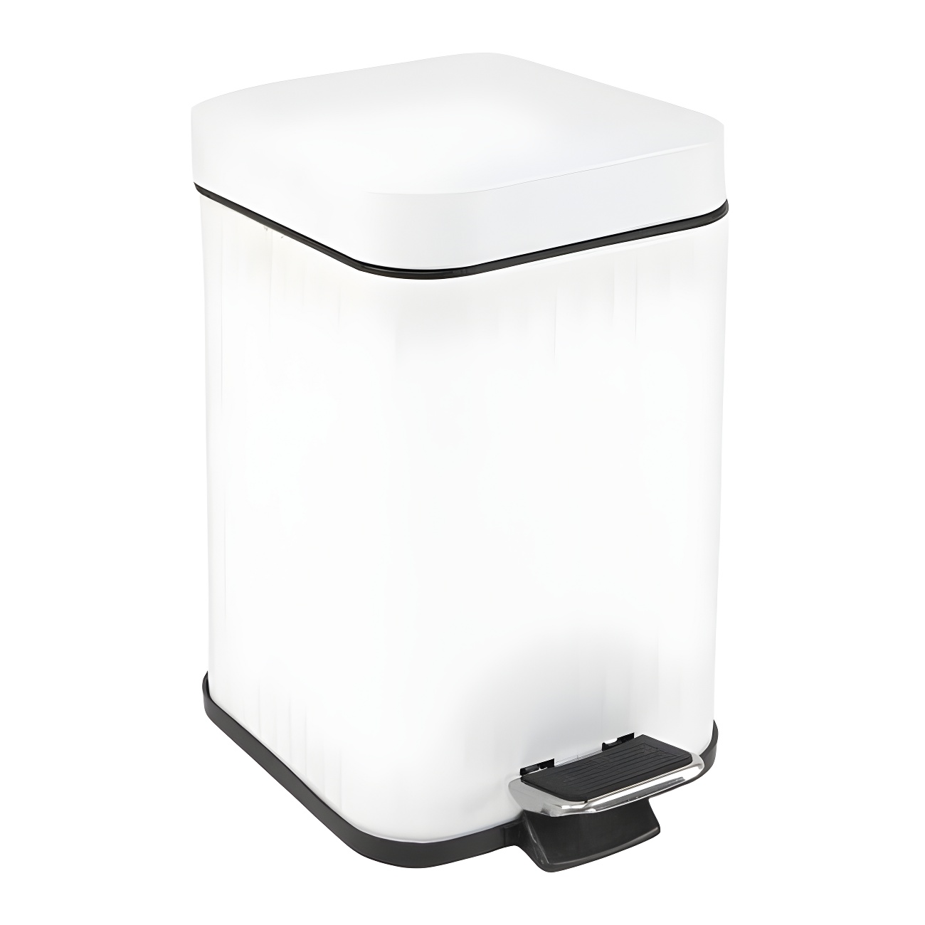 Elle est équipée d'une pédale pour une ouverture mains libres et d'un couvercle qui contribue à contenir les odeurs. Sa forme carrée et son anse arrière facilitent son positionnement dans les angles et son transport.