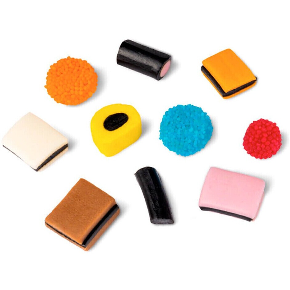 • Assortiment de réglisse aux goûts de citron, mûre, fraise, orange, chocolat.