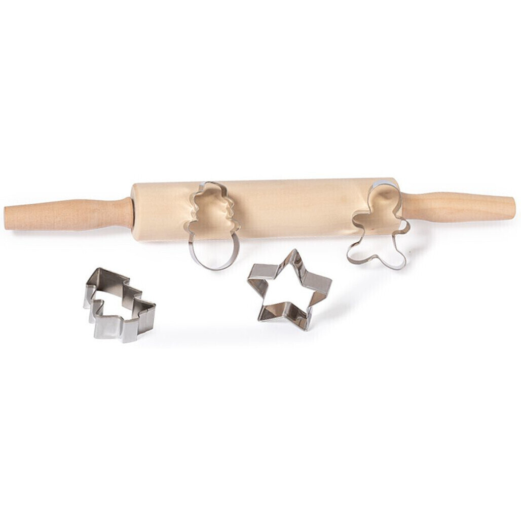 - Comprend un rouleau à pâtisserie et 4 moules en forme de Sapin de Noël, Étoile, Bonhomme de Neige et Bonhomme en Pain d'Épice.